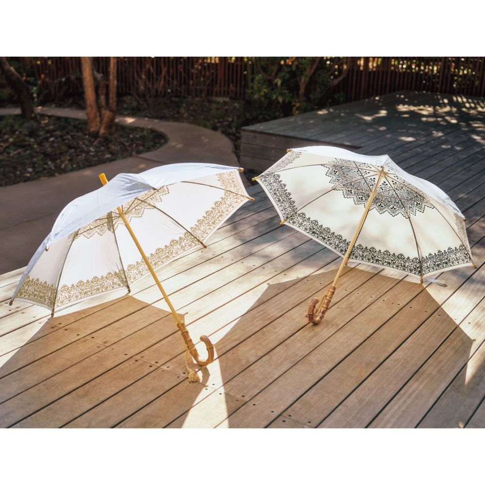 高いUVカット率と遮熱力!上品なレース模様の白色日傘。独自のコーティング技術で、白傘なのに高い紫外線カット率を実現。遮熱効果も高く、猛暑の熱中症予防にも。上品なレース調デザインの日傘白色ベースにレース模様を施した長傘です。上品な印象ながら、普段使いにも馴染むシンプルなデザインで、大人の女性の装いを引き立てます。高いUVカット率と遮熱効果でしっかり対策独自のコーティング技術により、白傘ながらも紫外線カット率は約99%。猛暑の日も安心できる遮熱効果も備えているため、日中のお出かけや通勤時の紫外線、熱中症対策に役立ちます。晴雨兼用で、急な雨にも対応可能です。使いやすさと丈夫さを両立親骨にはスチールを採用し、しっかりとした耐久性を実現しました。持ち手には寒竹を使用し、手に馴染みやすく持ちやすい設計。長時間の持ち歩きでも疲れにくい約265gの軽量モデルです。