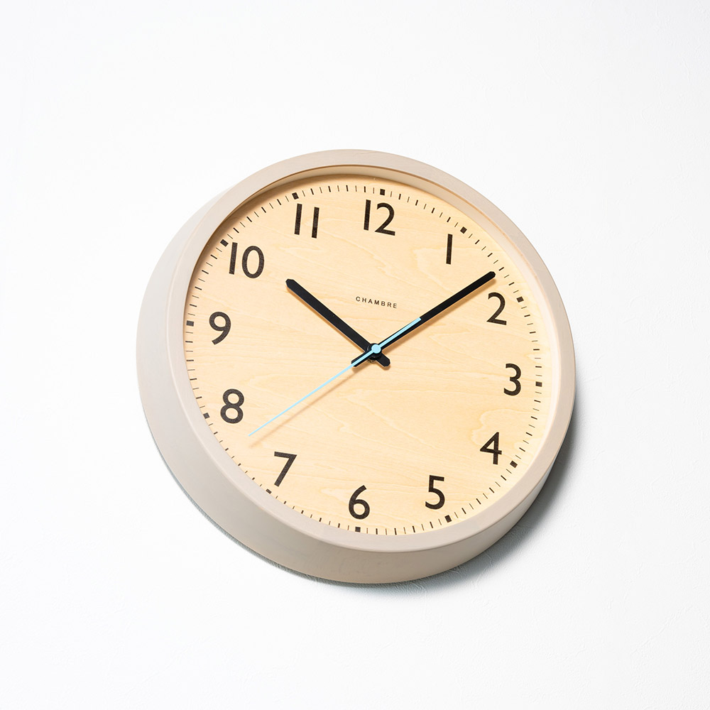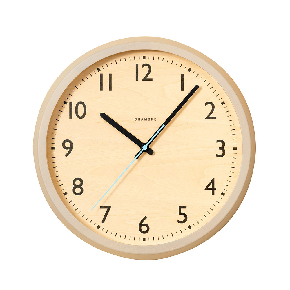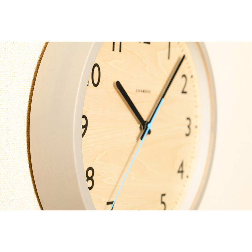 無垢の木材を使用した本体に水色の秒針をあしらった北欧を感じるデザイン。森林の朝露が光る景色をイメージしています。時刻設定のいらない電波式。北欧の美しく広大な森林の中に緑が放つ清々しい空気と朝露をコンセプトとした電波掛時計。■温かみのあるウォームグレイ温かみのあるウォームグレイを縁に、朝露を連想させる水色を秒針に使用しました。■天然木枠が使用された温かさビーチと天然木材、文字盤はナラ材を使用、部屋全体に美しい自然が取り込める新しい電波時計です。■嬉しい電波時計機能時刻設定のいらない電波式。引っ越しや結婚祝いなどのギフトにもおすすめです。■ブランド/CHAMBRECHAMBREはいつの時代にも溶け込めるデザインと主張し過ぎない存在感、何世代にもわたりそこに鎮座しているような時計を、レプリカではなく「未来のクラシック」を目標に提案し続けます。何百年も生き続けてきた木が生まれ変わるのではなく、そのままの個性で生き続けるようにという願いが込められた時計は、日本の職人によってひとつひとつ丁寧に作られ続けています。