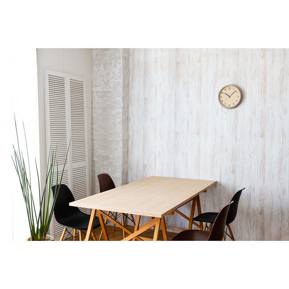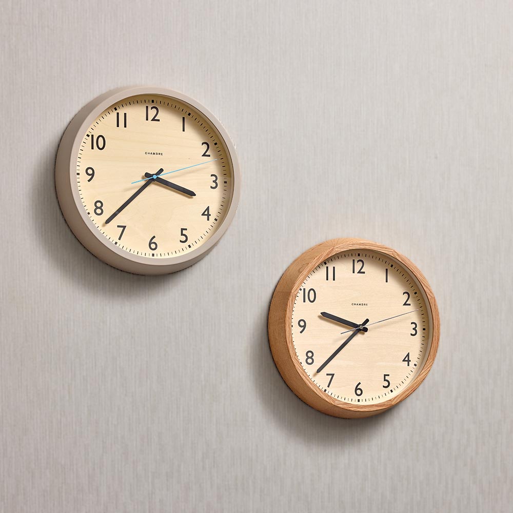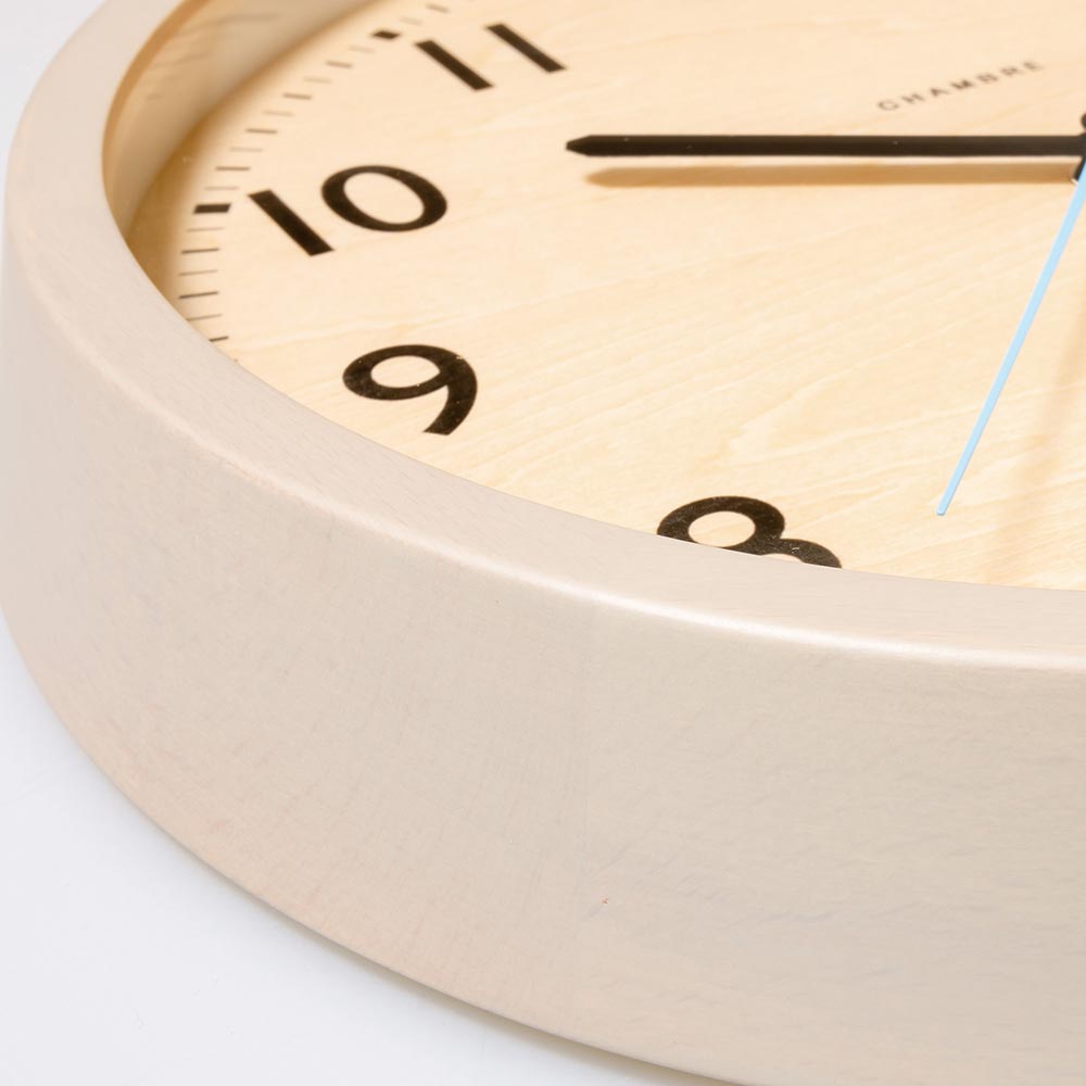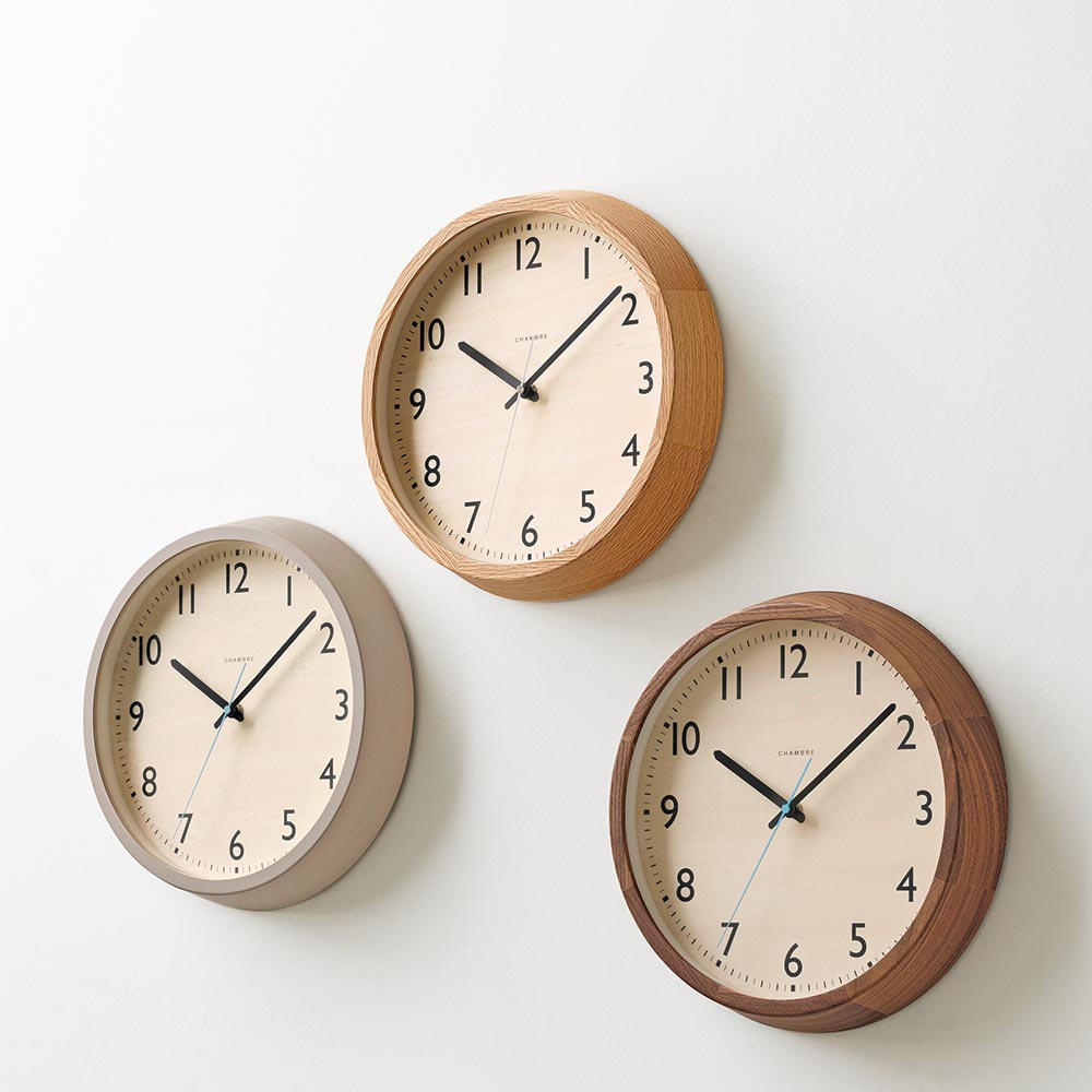 無垢の木材を使用した本体に水色の秒針をあしらった北欧を感じるデザイン。森林の朝露が光る景色をイメージしています。時刻設定のいらない電波式。北欧の美しく広大な森林の中に緑が放つ清々しい空気と朝露をコンセプトとした電波掛時計。■温かみのあるウォームグレイ温かみのあるウォームグレイを縁に、朝露を連想させる水色を秒針に使用しました。■天然木枠が使用された温かさビーチと天然木材、文字盤はナラ材を使用、部屋全体に美しい自然が取り込める新しい電波時計です。■嬉しい電波時計機能時刻設定のいらない電波式。引っ越しや結婚祝いなどのギフトにもおすすめです。■ブランド/CHAMBRECHAMBREはいつの時代にも溶け込めるデザインと主張し過ぎない存在感、何世代にもわたりそこに鎮座しているような時計を、レプリカではなく「未来のクラシック」を目標に提案し続けます。何百年も生き続けてきた木が生まれ変わるのではなく、そのままの個性で生き続けるようにという願いが込められた時計は、日本の職人によってひとつひとつ丁寧に作られ続けています。