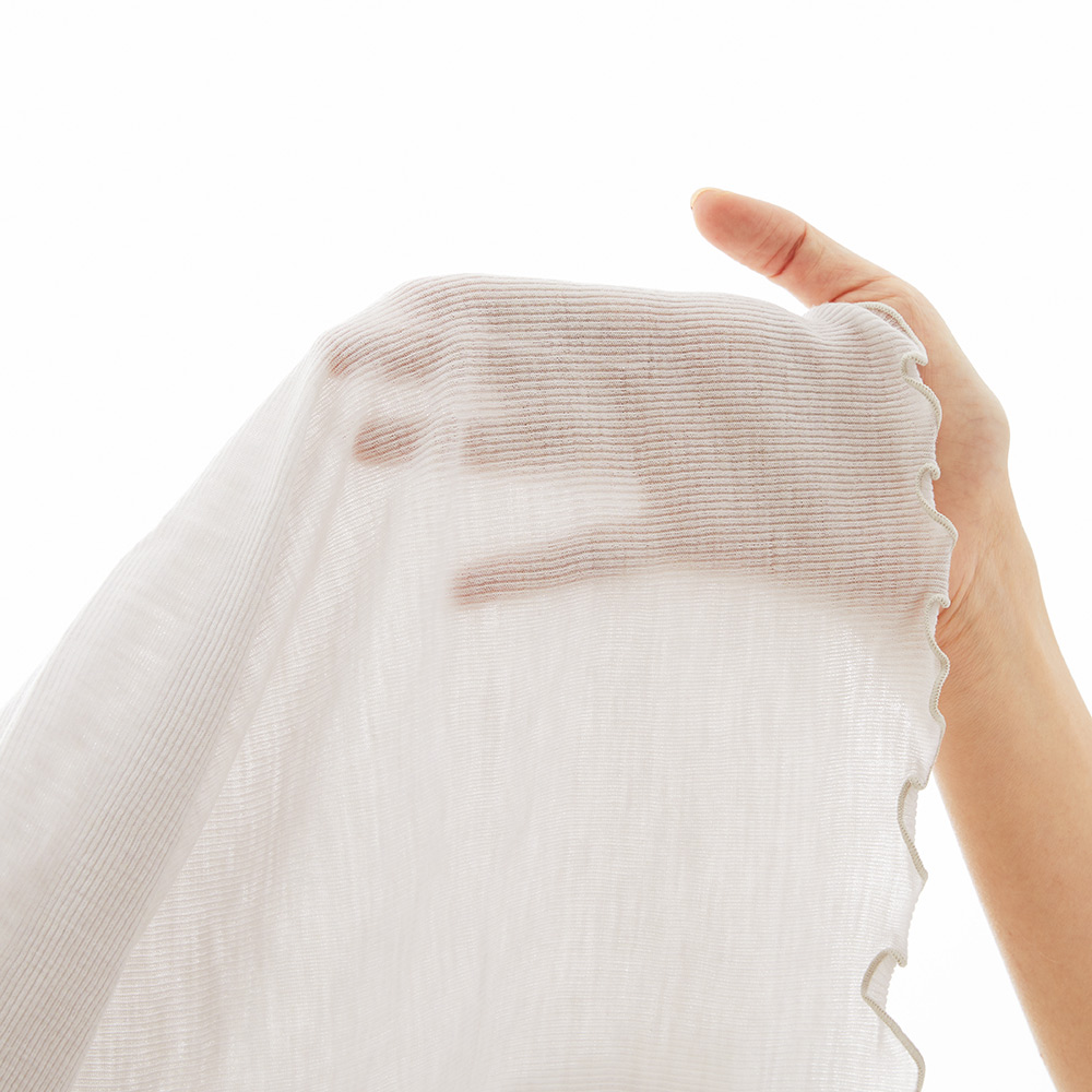 (ア)ホワイトグレー 透け感のある素材感なのにウールだからしっかりあたたか。
