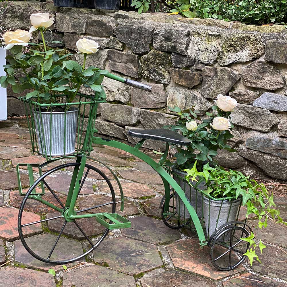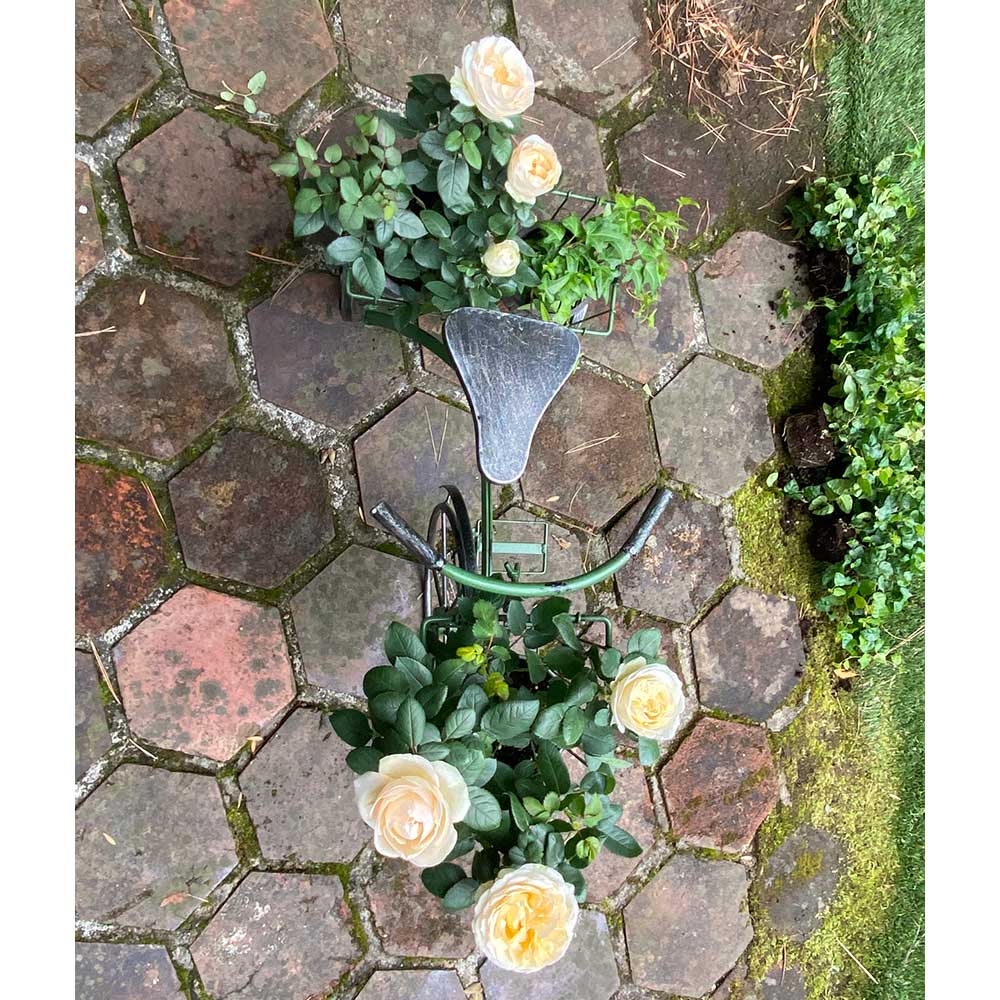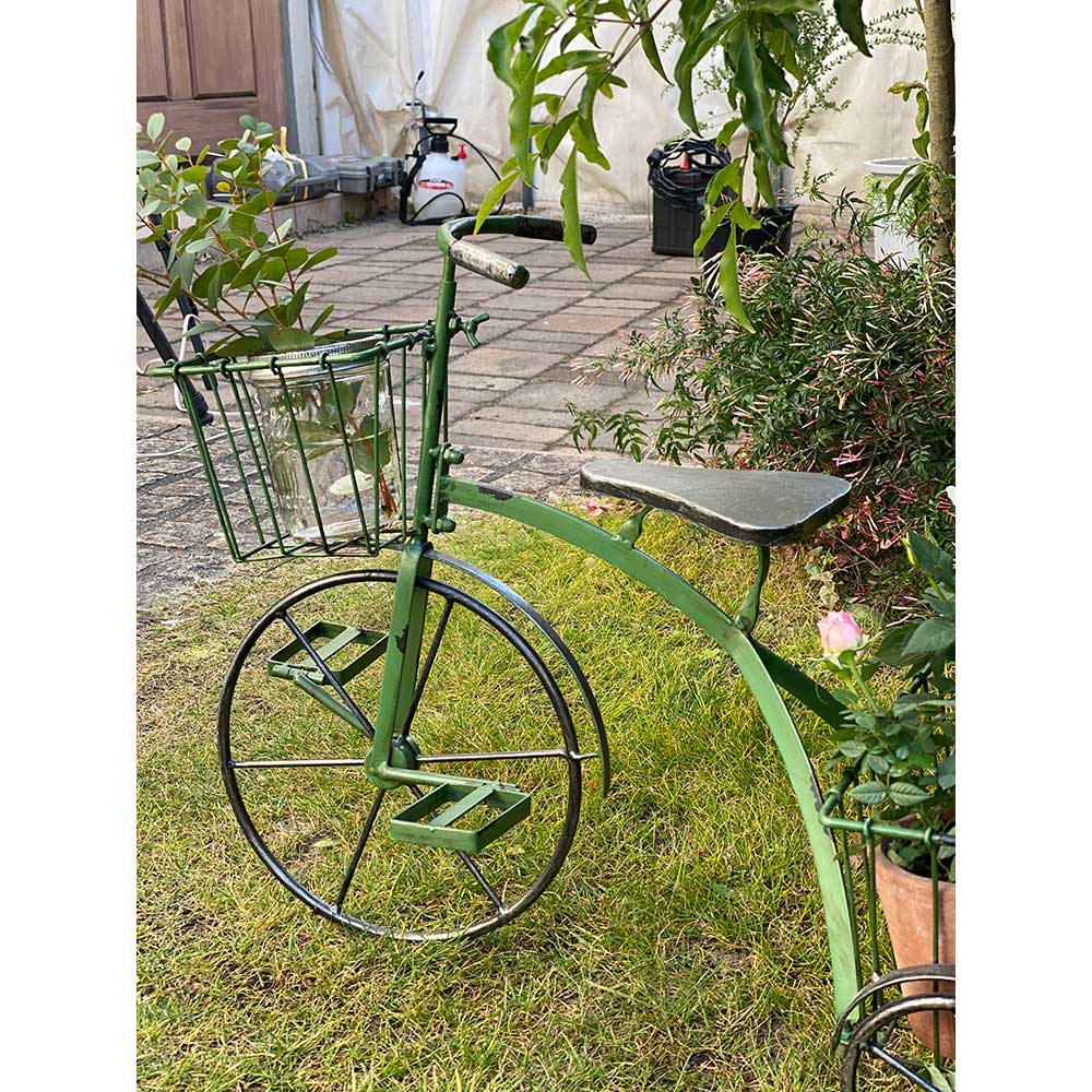 ※スチール製品は素材の特性上、経年変化でサビが発生致します。長くお使い頂くために、お届け直後の錆止め材の塗布をお薦めしております。 また、ご使用開始後も定期的なお手入れをお薦めします。(お手入れ方法&取り付け方法)まるで庭に置き去りにされたような自転車型のフラワースタンド。置くだけで素敵な物語のある庭づくりに。使い古したようなサビ感とノスタルジックなデザインが魅力。バスケットには小さなプランターを飾ったり、咲き終えたバラのドライフラワーを入れて楽しんでも。お庭や玄関先でアクセントになる自転車型のアイアン製プランター台です。お庭やテラス、玄関のアクセントにできる花台です。