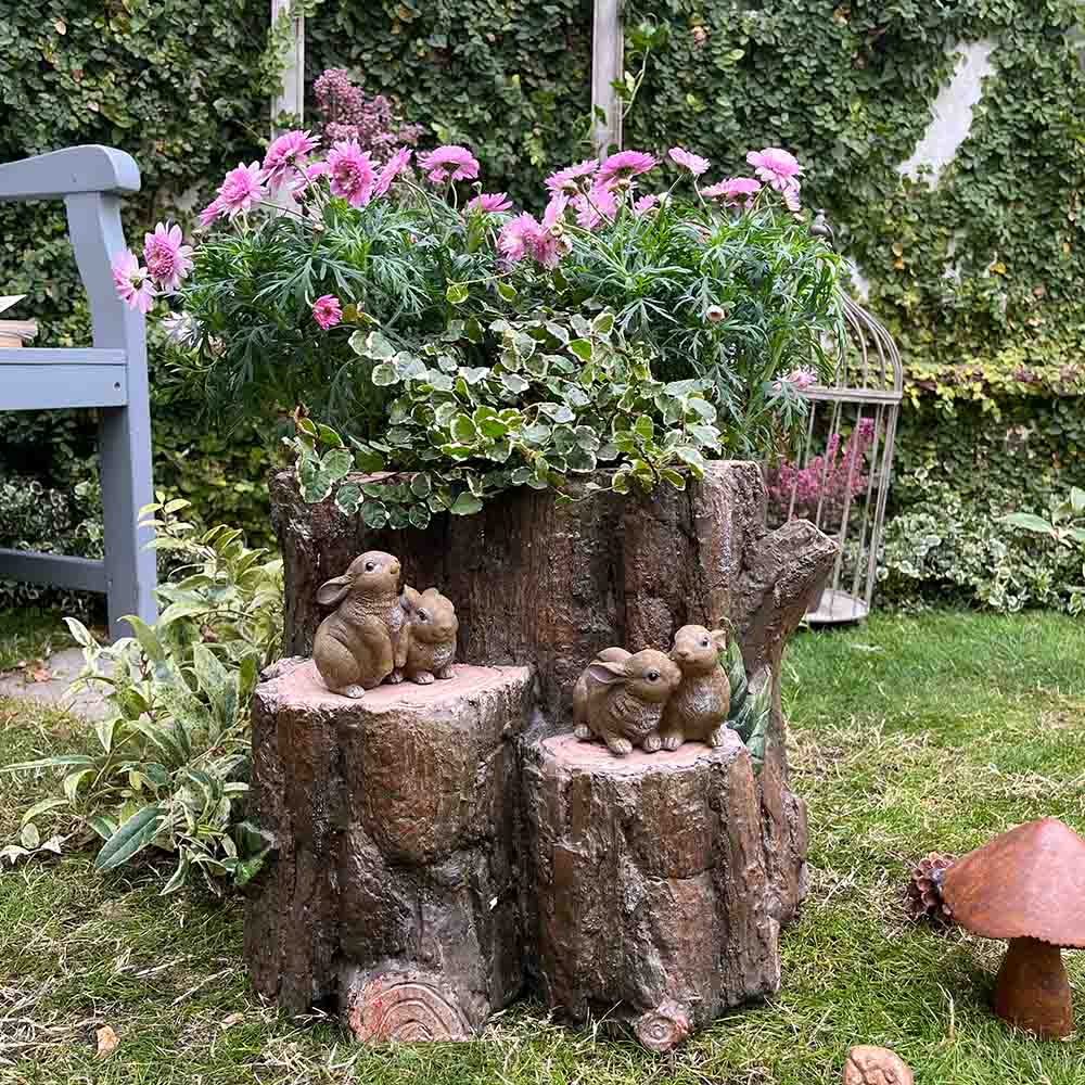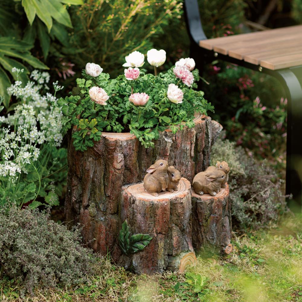 森の中のような一幕をお庭に。寄り添って甘える親子ウサギ。ほっと心和むシーンを演出します。