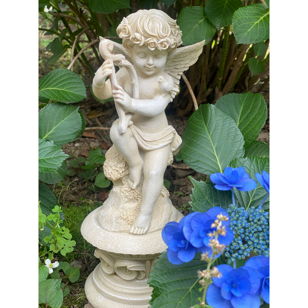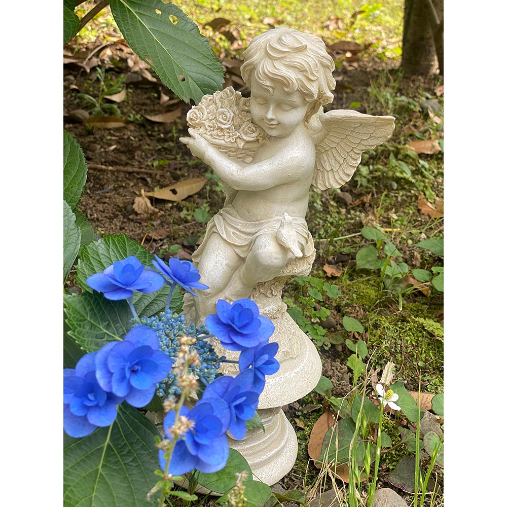 お庭に舞い降りてきたのは、ハープを弾くエンジェルと、バラのバスケットを抱えたエンジェル。花壇や玄関先にも。ローズガーデン、エレガントテイストやフェミニンなテイストのお庭にもピッタリのオーナメント。お庭の入口や、花壇の両端、玄関先に置いけば、まるでエンジェルに誘われているかのよう。巻いた髪の毛や、ローズ、天使の羽のとても精巧な作りで高級感が溢れます。