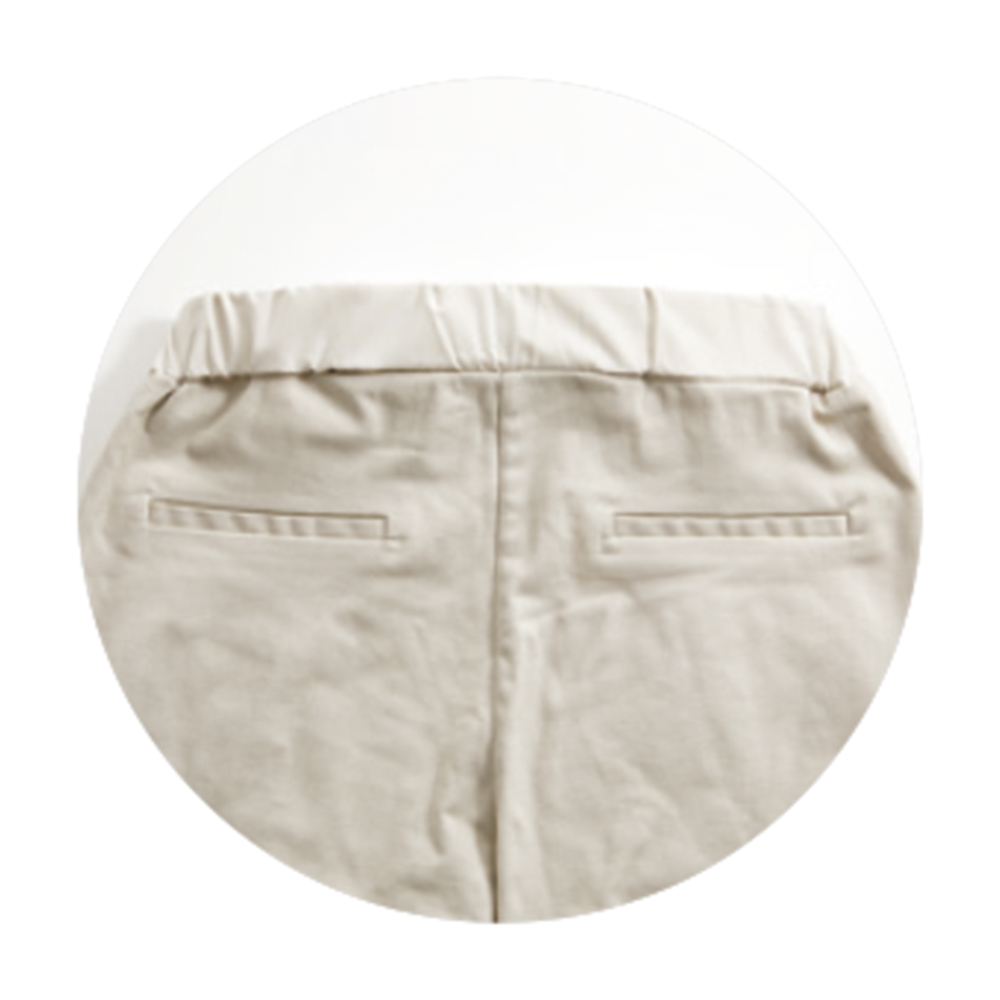 ウエストは総ゴム仕様だから着脱がラクで着心地も快適。