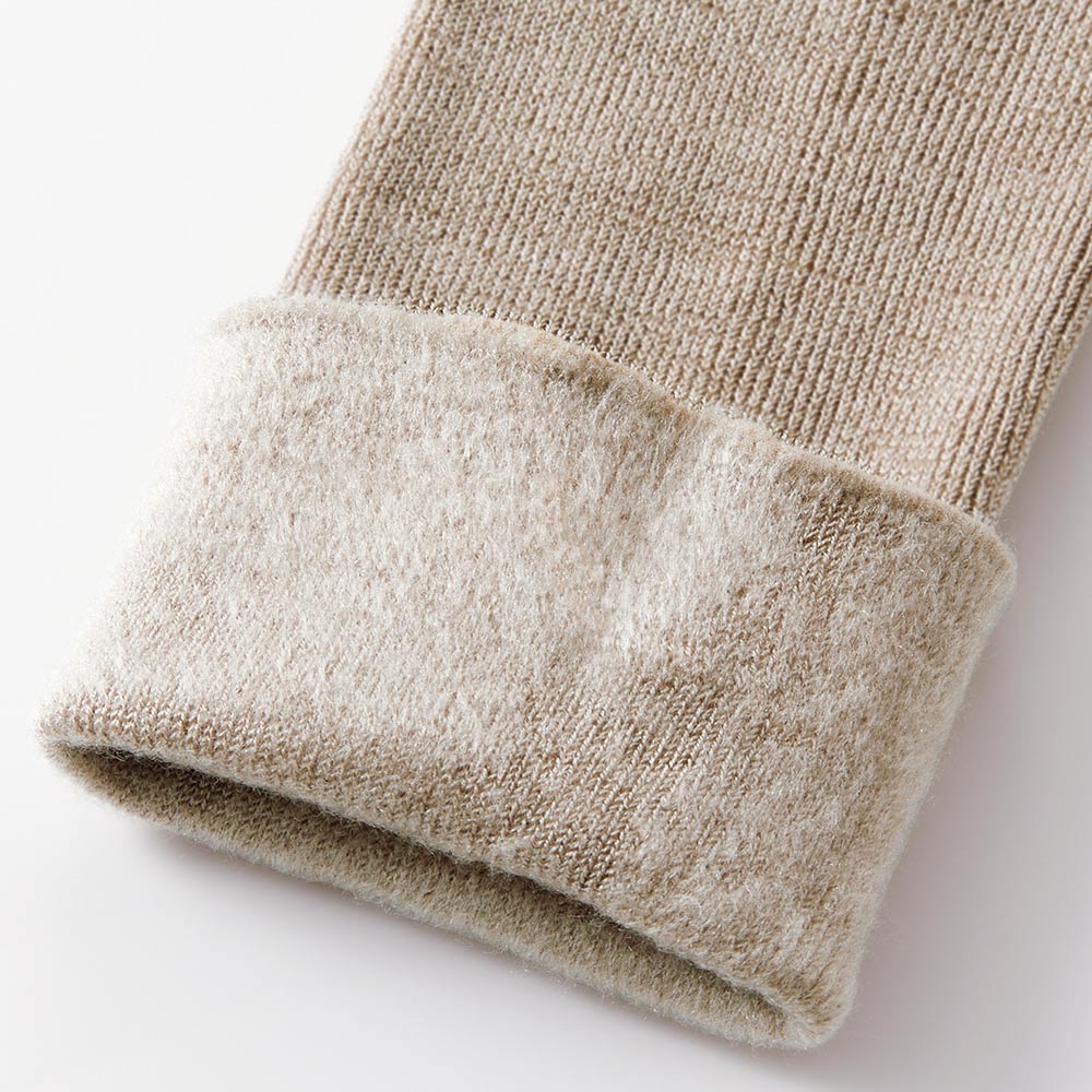 今季の“推し”レギンスはふわふわシルクの裏起毛。シルクの裏起毛素材が脚全体を気持ちよく包む!ほんのりシルクの光沢感がコーディネートを綺麗めに見せてくれる10分丈レギンス。シルクは毛羽繊維が細いため着ぶくれしにくい素材感で、すっきりラインをキープできるのもうれしいポイントです。優しいニュアンスカラーで印象は上品に。●日本製