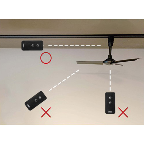 〇はON、−はOFFです。〇を押すと回転がスタートし、下向に風を送り出します。リモコンのOFFを押すとOFFとなりますが、壁スイッチでON/OFFも可能です。