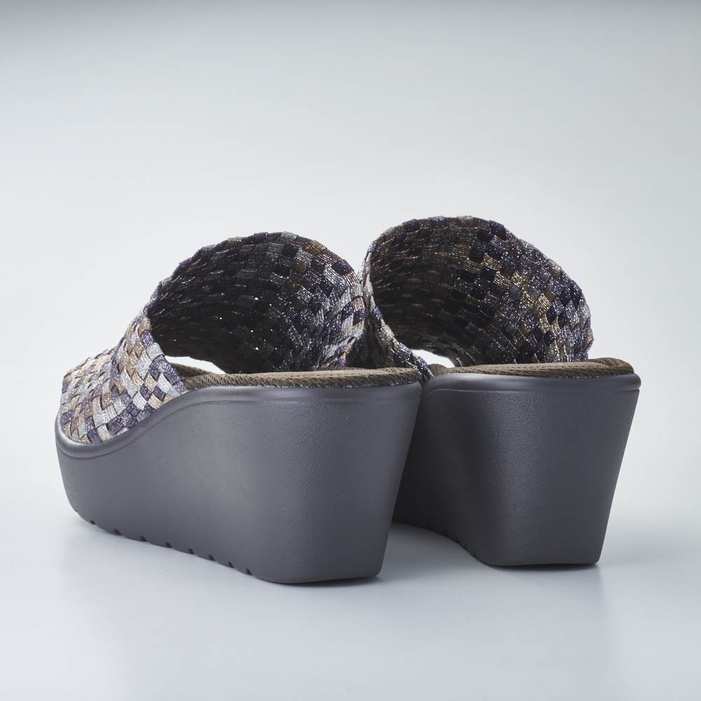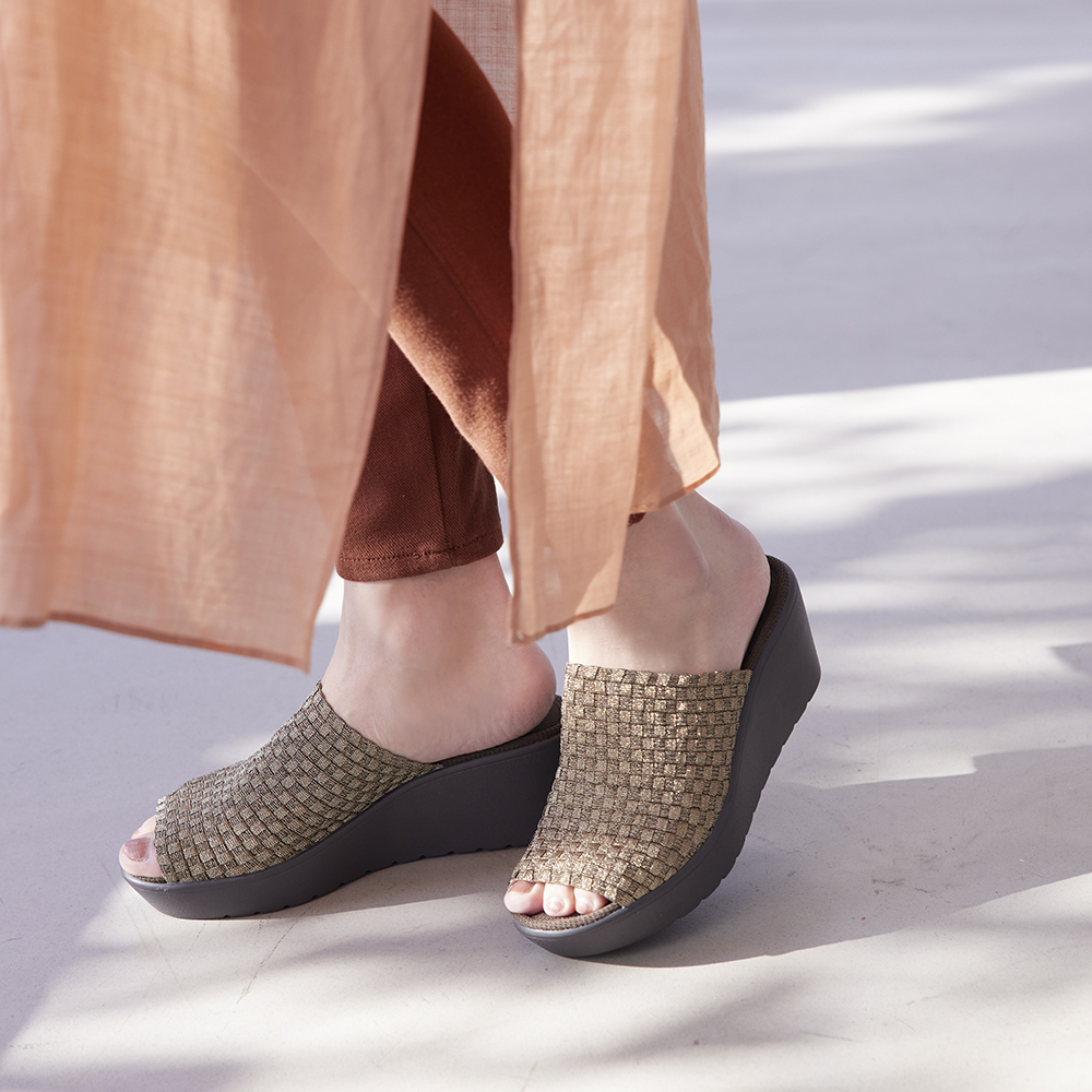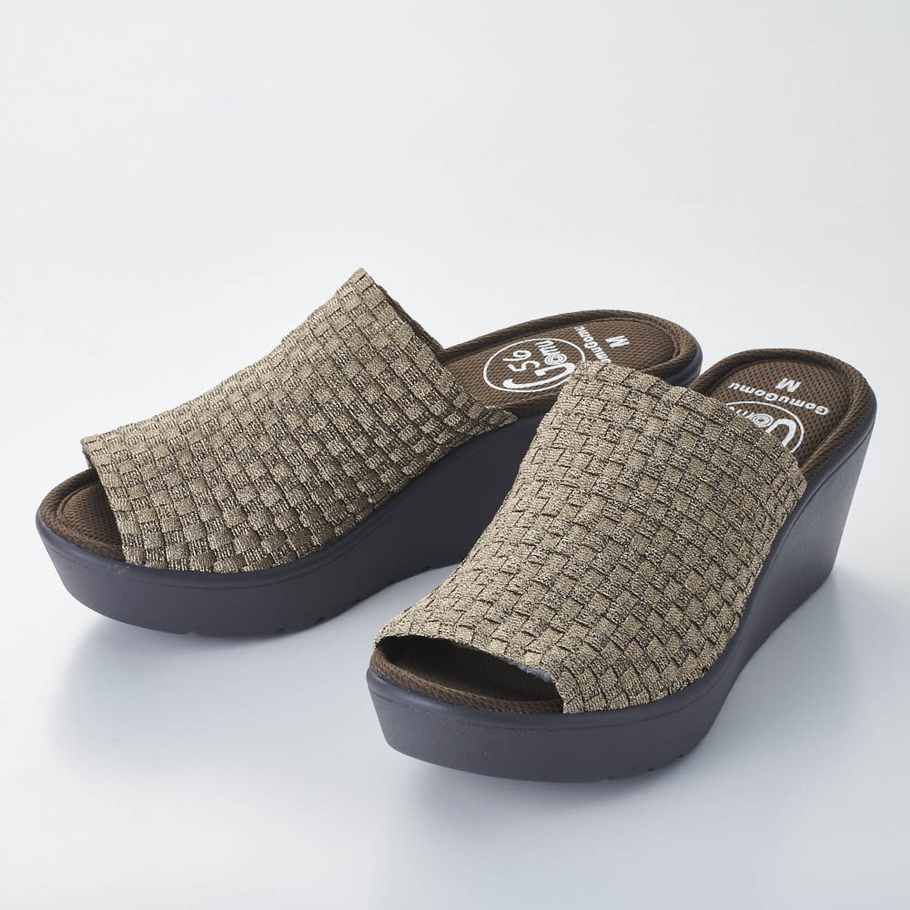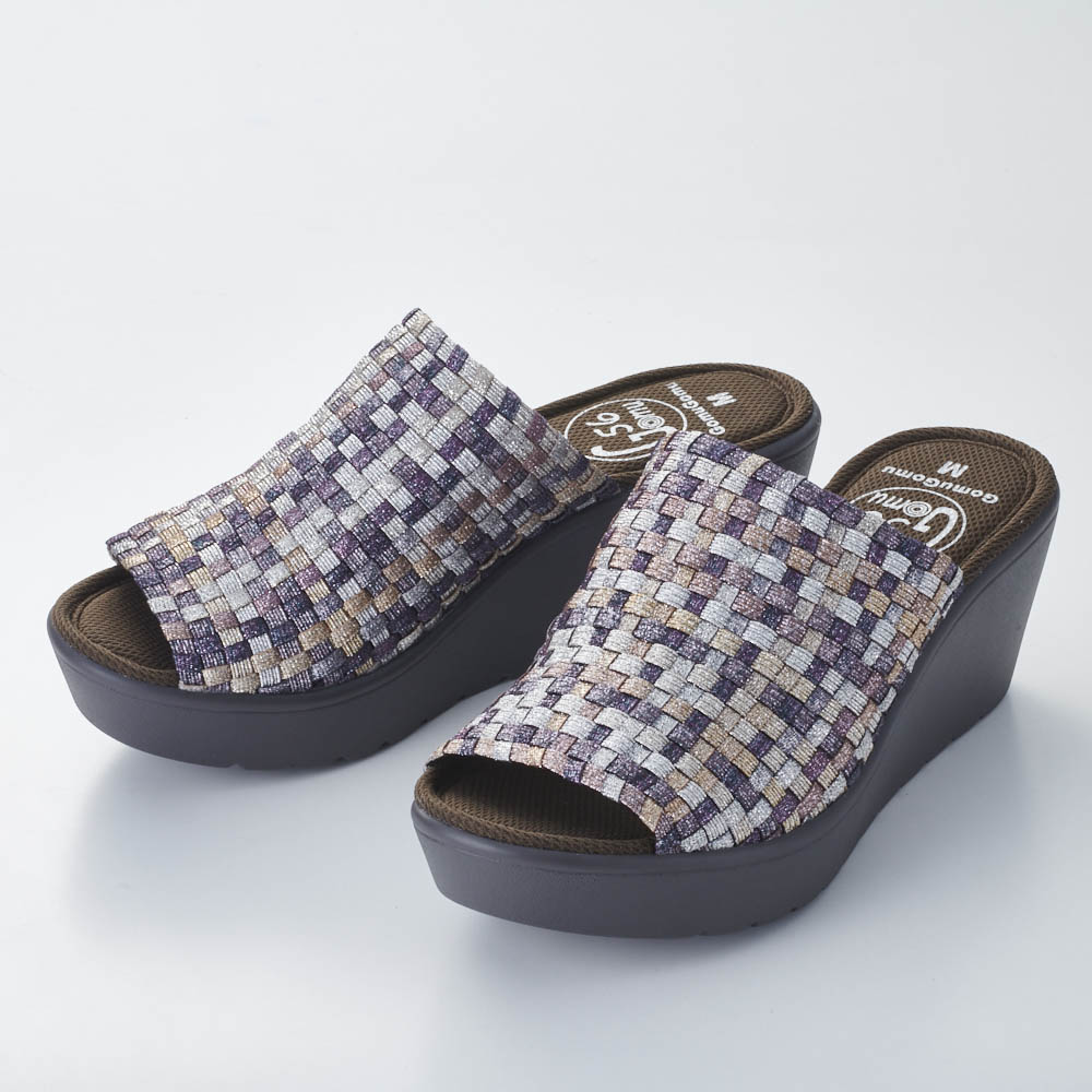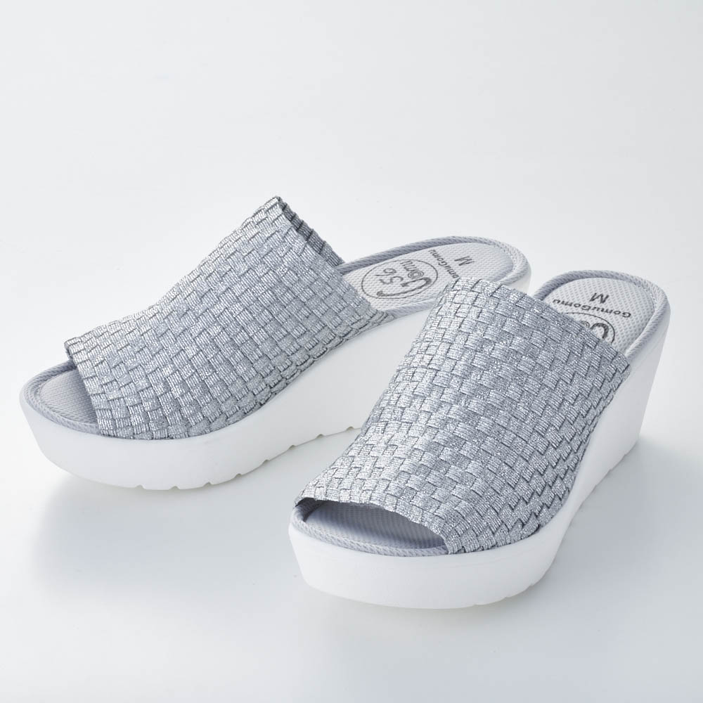 この軽さと一体感はウェッジソール革命!シリーズ累計出荷数 157万足突破!※2015年6月〜2024年4月シリーズ累計メーカー出荷数こんな人におすすめ!●なかなか合う靴がみつからない・・●コンフォートシューズのサンダルが欲しかった!ディノスだけで買える人気のサンダルが今年もお目見え大人気の「ゴムゴム」から登場したさっと履けるサンダルタイプ!ディノス50周年時に企画したオリジナルデザインです。アッパーのゴムのメッシュが足にフィットし、歩きやすさも実現。厚みのあるウエッジソールはスカートともパンツとも好相性です。最大の特長!アッパーのゴムゴム素材足の形は人それぞれ。甲の高さや幅はもちろん、歩き方の癖まで考慮するとどんな人にも合う靴ってなかなかないもの・・。ゴムゴムブランドの最大の特長であるアッパーのゴムメッシュ素材は、柔らかで伸びの良いゴムとポリエステルの2種類を使用しているので伸びすぎる事なく自分の足にはフィットしてくれます。それをメッシュ状に手編みする事で、伸縮しながら足の動きに優しくフィットする足に吸い付くような履き心地に仕上がっています。しかも縫い目がないから、足の甲への当たりもフラット。履きやすい歩きやすいウェッジソール一般的なウェッジソールで、重さやフィット感で不満を感じたことがある人も多いはず・・。今回、軽量のソールを採用し、伸縮性のあるアッパー素材を使用することで、足の動きにしっかり付いてきて、スタスタと歩けるウェッジソールサンダルを実現しました。しかもヒール自体は約6.5cmのスタイルアップサンダルでも、前側も約3cmのヒールにすることで、足の前側と後ろ側で感じる高低差を軽減しています。歩きやすいさらなるポイント”インソール”低反発のインソールを使用することで、足の裏に感じる衝撃を軽減してくれます。約6.5cmヒールのサンダルとは思えない疲れにくさを感じていただけます。このゴムゴム定番の低反発クッションに凹凸メッシュタイプが登場。気になるシューズの中での足滑り、表面の凹凸がムレを軽減してくれます。コーディネートに取り入れやすい4色をご用意コーディネートを足元で引き締めてくれる定番のブラック。春夏らしく目を引くシルバーはホワイトカラーやフラワー・ボタニカル等の柄物と相性◎。流行のブラウンがかったブロンズカラーは、大人きれいなメタルカラー。ホワイトデニムにも高相性◎そしてベージュ・ブラウン・ブロンズのミックスは、コーディネートの主役にも。シンプルなコーディネートに合わせて。― GOMU GOMU/ゴムゴム ―伸縮性のある素材による「フィット感」とカラフルで個性的なデザインで今、大人気のシューズブランド、Gomu56。楽チンで可愛く、履くだけで気持ちが明るくハッピーになるブランドです。屈曲性の高いアウトソールや、形状記憶性のあるインソールなど機能面も抜かりなし。カラーが豊富なゴムゴムは季節や気分に合わせて色ち買いしたくなる一足♪