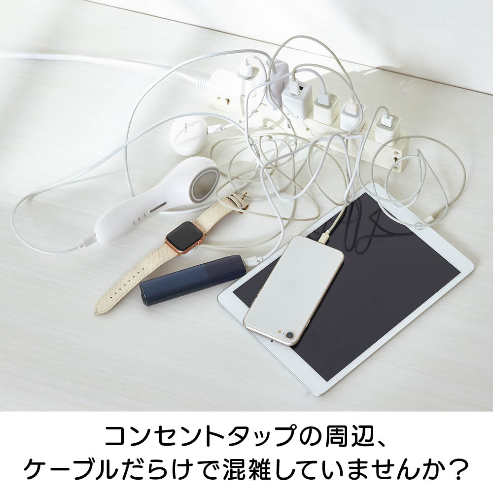 タップ回りのゴチャゴチャを解消。充電できる指定席があれば、すぐ美デスクに。