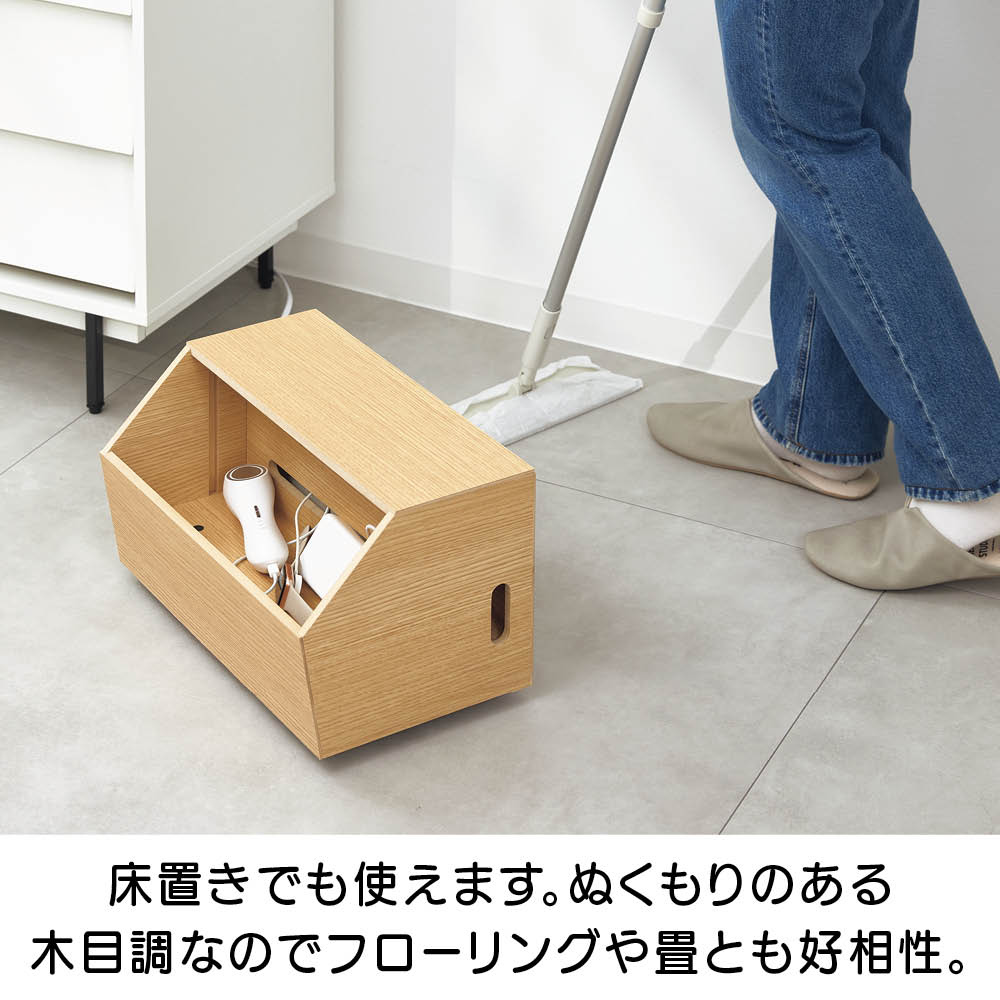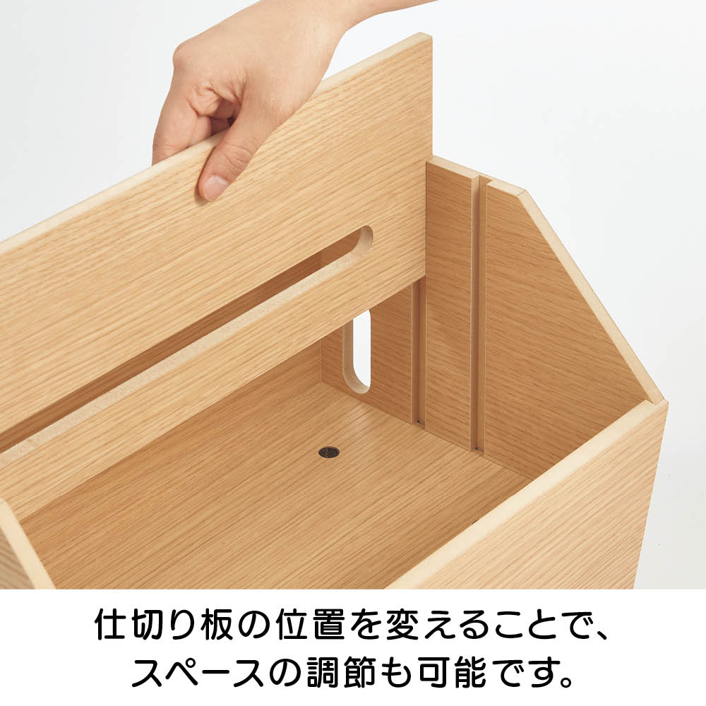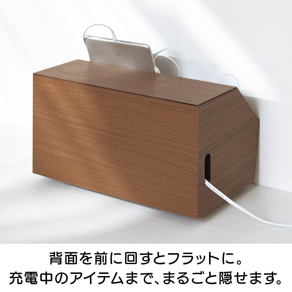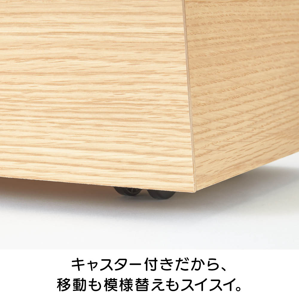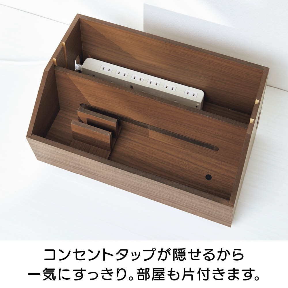 便利だけど、どんどん増える充電式の小型家電。同じ数だけケーブルも増え、コンセントタップは大渋滞。それらを一気に整理・収納しながら充電もできるワゴンができました。キャスター付きで移動もできるのでホコリがたまる前に掃除でき、デスクやコンセント回りをスッキリとキレイにキープできます。タップ回りのゴチャゴチャを解消。充電できる指定席があれば、すぐ美デスクに。便利だけど、どんどん増える充電式の小型家電。同じ数だけケーブルも増え、コンセントタップは大渋滞。それらを一気に整理・収納しながら充電もできるワゴンができました。キャスター付きで移動もできるのでホコリがたまる前に掃除でき、デスクやコンセント回りをスッキリとキレイにキープできます。出しっぱなしで充電待ちのシェーバー、踏みそうになる充電中のタブレット、足に絡みそうなケーブル類。ホコリや汚れがたまりやすいし、見映えも悪く、なによりコンセント発火の原因になりそうで心配。天板を外すと中にコンセントタップ用のスペースがあります。最大で6口のタップが収納可能。PC用などの大きなアダプタを接続しても収まるサイズにしました。接続部分が隠れると、見た目も片付いた印象に!スマホやスマートウォッチ、ワイヤレスイヤホンなど、大きなものから紛失しそうな小さな家電まで収納しながら充電できます。1ヵ所でまとめられるので「あっちは終わったかな」と家の中をあちこち確認に行く手間も省けます。スマホなら4〜5台、タブレットなら並べて2台置けます(※メーカー・サイズによっても異なります)。充電難民による家族ゲンカもこれなら未然に防げそう。すっきりと立てて置けるよう、本体と同色の専用スタンドも付属しています。本体の仕切り部分には2ヵ所の溝があり、仕切り板をはめかえることが可能。コンセントタップやアダプタのサイズに合わせてスペースが選択できるので、充電機器が増えても大丈夫です。外からは見えにくい隠しキャスター付き。ワゴンタイプなので軽い力でラクに移動できます。「充電中に着信が!」という時もワゴンごと手元に引き寄せられて便利。このワゴンをデスクのガジェット用ドックとして使えば、散らばりがちな机上に余白ができます。ホコリがたまる前にちょこっと移動させて掃除もテキパキ、仕事環境も整います!フロアスタイルにもなじむシンプルなデザイン。モップや掃除機を掛ける時は、片手ですっと移動して。汚れと一緒にたまりがちな掃除モヤモヤも速やかに解消です。背面も化粧板仕上げにしているのでシンプル、見せてもきれい。来客時などにクルッと回して置けば、生活感もさりげなく薄められます。