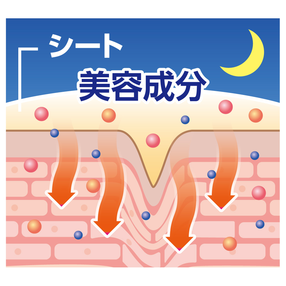 翌朝まで美肌成分を含んだシートが密着 乾燥で弾力が失われた肌に、水分を閉じ込め集中ケア。 ※イメージ
