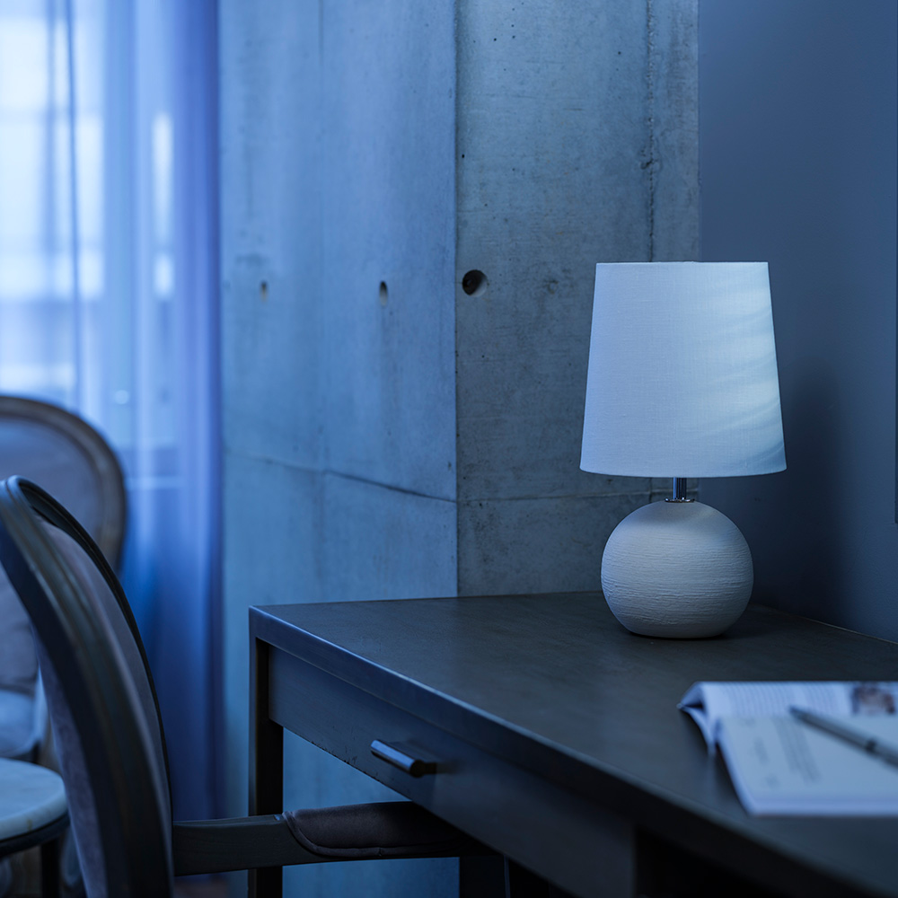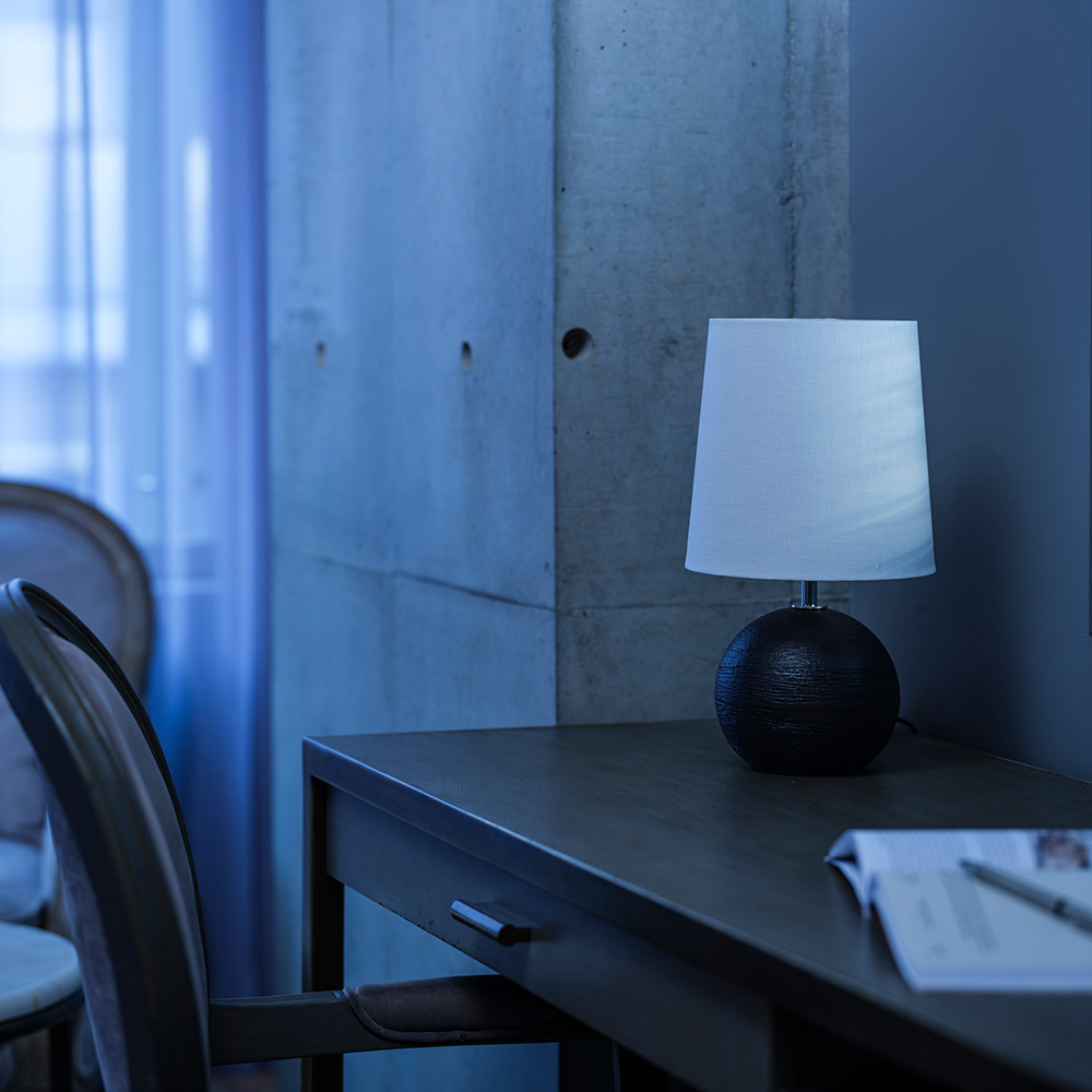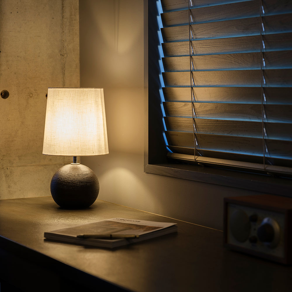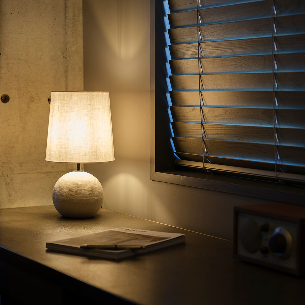 光を優雅に透過する天然素材 リネンのスラブ生地を使用したシェードに、日本六古窯のひとつ、信楽焼の陶器を本体に使用した可愛らしいテーブルランプ信楽焼のベースが生み出す美しい陰影に心癒される一品。インテリア性が高く、消灯時も空間のアクセントに。