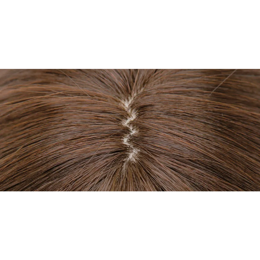 坂巻哲也の指導を受けた、ウィッグ職人が手作業でカット。頭頂部には肌の見た目に近い人工地肌を採用し、生え際を交互に植え込むことで自然な仕上がりに。