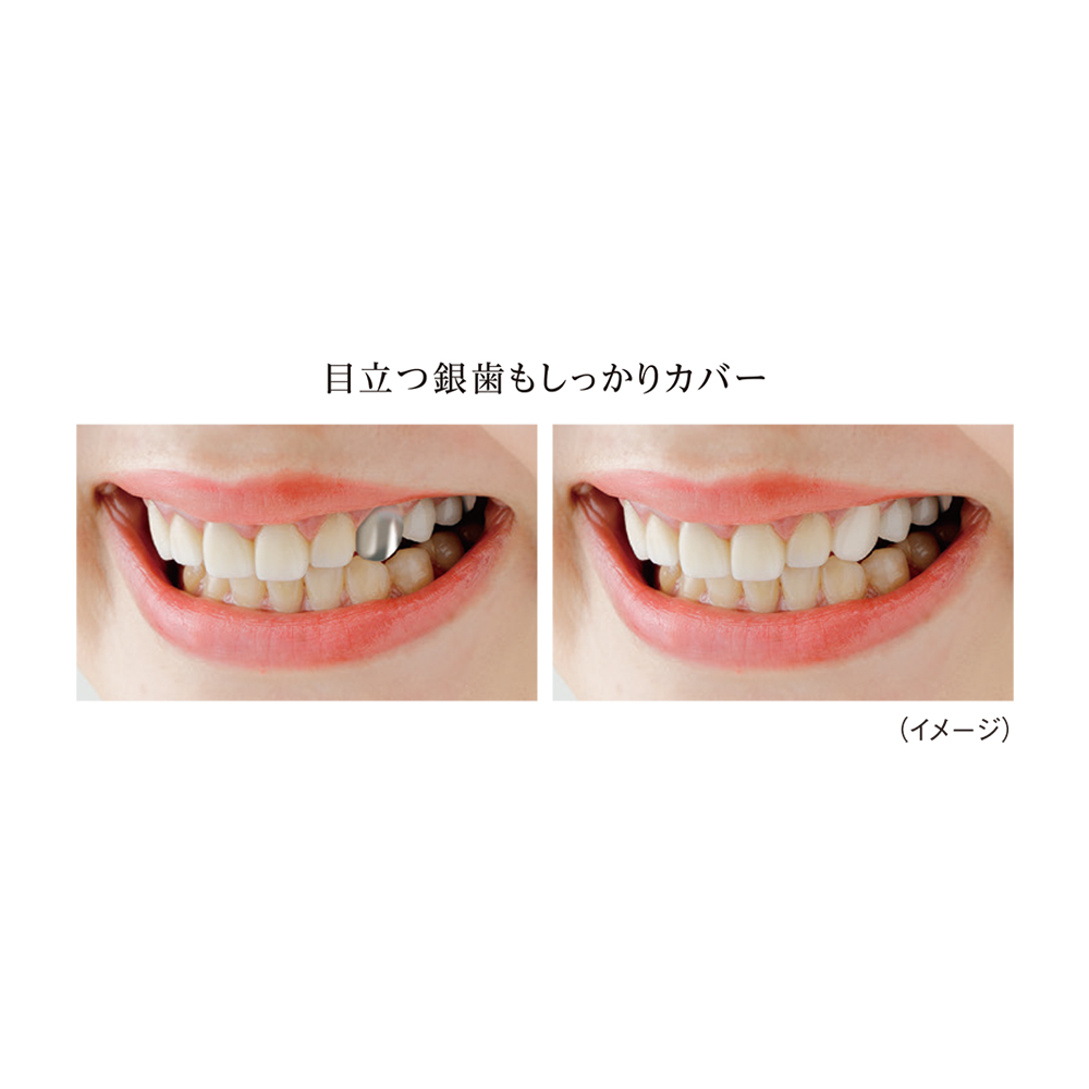 気になる銀歯やくすみをカバーして思いきり笑える歯に!ホタテ貝殻から作られた「胡粉」を配合した歯のマニキュア。薄く塗れば黄ばみやくすみを目立たなくし(※)、厚く塗ればチラ見えが気になる銀歯もしっかりカバーします。白すぎず自然な歯色を演出するオフホワイトカラー。適量出せるダイヤル式も便利です。※ メイクアップ効果