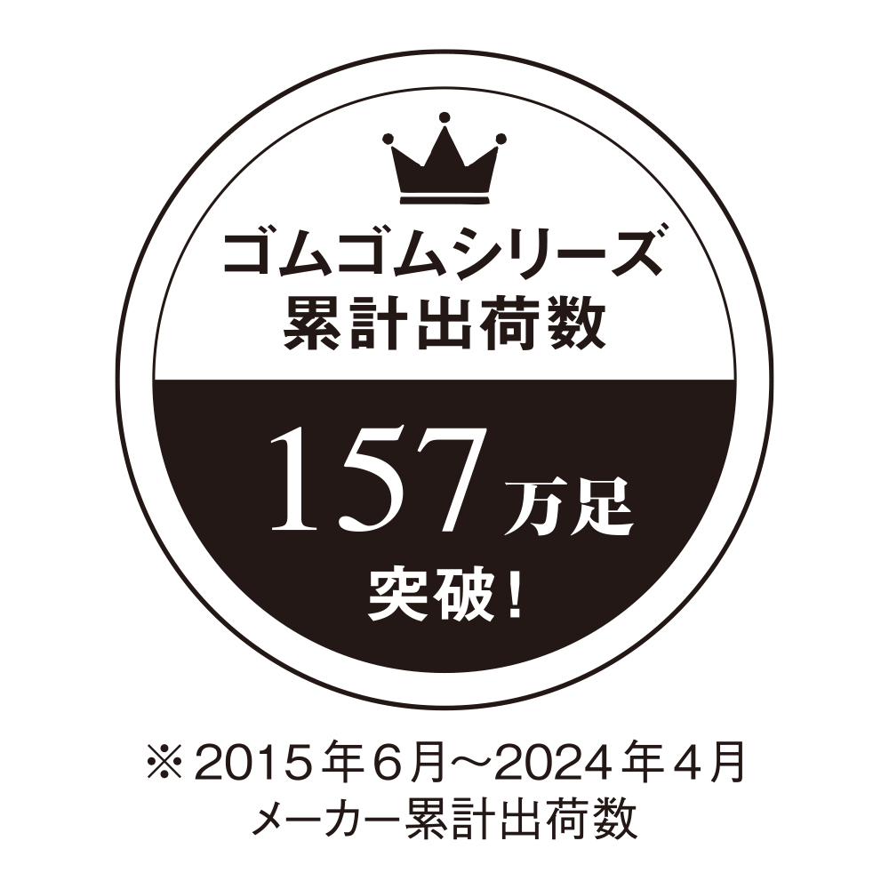 ゴムゴムブランドの最大の特長であるアッパーのゴムメッシュ素材は、柔らかで伸びの良いゴムとポリエステルの2種類を使用しているので伸びすぎる事なく自分の足にはフィットしてくれます。