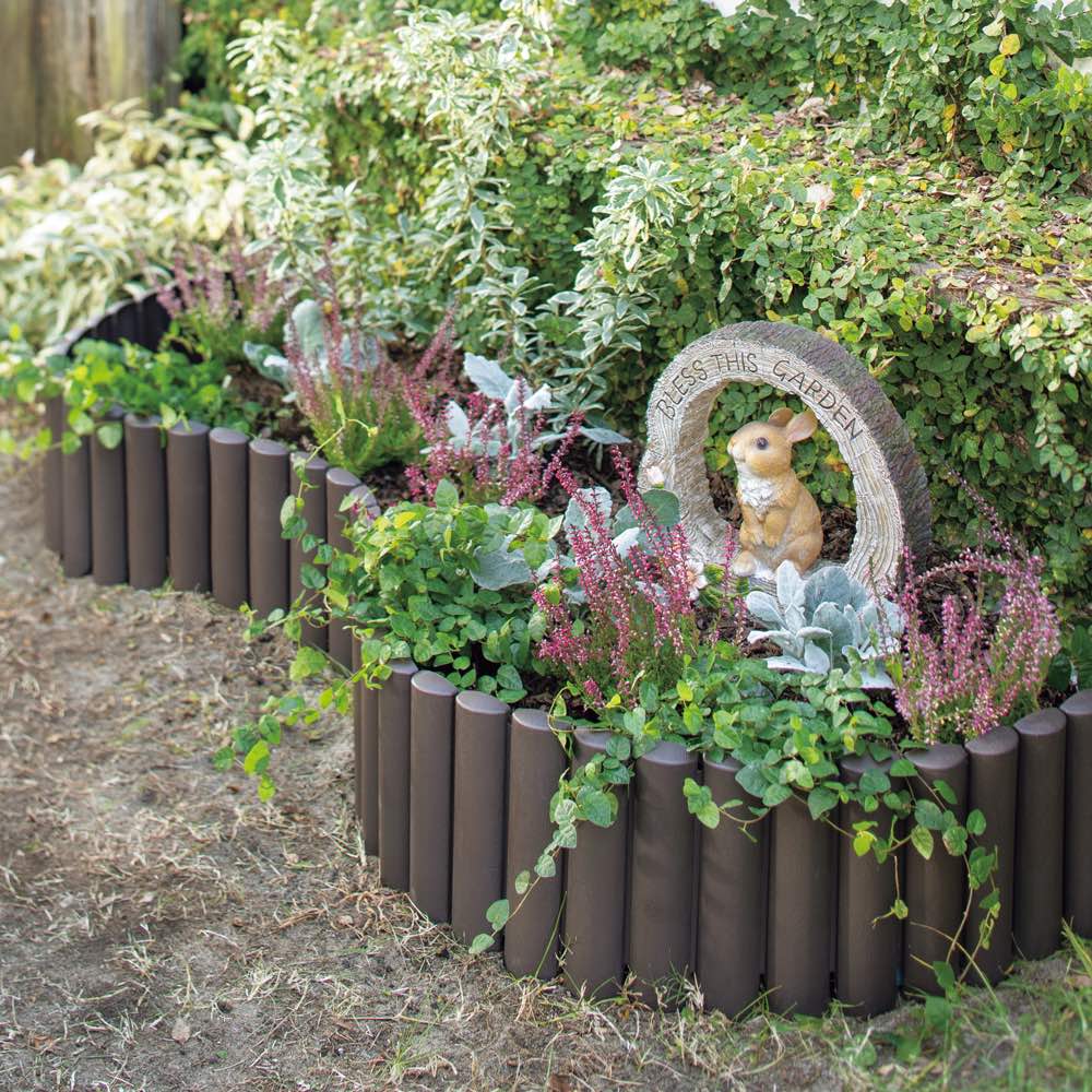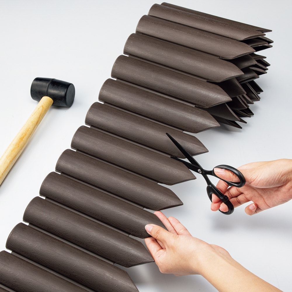 連杭のような木目調でお洒落に根止め。1枚のシート状ですき間なく土漏れの心配も無用、曲線の設置もキレイにできます。