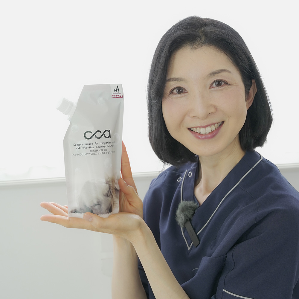 獣医さんと作ったペットにとって大切なニオイの事を考えた洗濯用洗剤敏感なペットの鼻に優しい洗剤で、快適な生活環境へ。ペット用品の洗濯に使えて繊維から重要な臭いを取りすぎないことを目指した洗剤です。ペットの健康を最優先に、ペットの心と体をケアするためのツールを形にすることを目指しました。【開発者・獣医師 茂木千恵先生のコメント】<人間とくらべて、ペットたちはどのくらい匂いに敏感なのでしょうか?>嗅覚は、人や物を識別する主な方法です。犬と猫の鼻には 2 億個以上の匂いセンサーがあります。人間は約4千万しかありません。ペットたちの嗅覚は人に比べてはるかに優れています。<「匂い」という観点で、部屋づくりにおいて大切にすべきこと>ペットにとって、安心できる匂いに包まれ、他の動物や見知らぬ人の匂いなどが少ない環境は、快適な環境と言えます。 また、大きなスペースでなくても、暖かくやわらかで、家族からの視線が気にならない、落ち着いた場所をペット専用に用意することが重要です。清潔さを保つことは衛生面で必要ですが、あまりにもにおいを取りすぎないように配慮することも大切です。飼い主さんが使用する洗濯洗剤や香水、デオドラントスプレー、除菌消臭スプレーなどが強い匂いを放つ場合、それがペットの安心できる匂いを嗅ぐ頻度を減らしてしまうことがあります。飼い主さんが快適である範囲で無香料の選択をすることも重要です。<商品開発のきっかけ>ペットの生活をより良くするには、体だけでなく心の健康も大切です。最近の研究では、ペットには見た目だけじゃなくて、自分だけの匂い、それはおもに尿や便など体の中から来る匂いがあって、その匂いのやり取りがペット同士のコミュニケーションに欠かせないことがわかってきました。室内のにおいをペットたちにとって快適な状態にすることで、ペットの生活の質を高め、飼い主さんのペットライフ満足度も高めたいという強い思いから、ペットのことを真面目に考えた洗濯洗剤を開発したいと考えるようになりました。