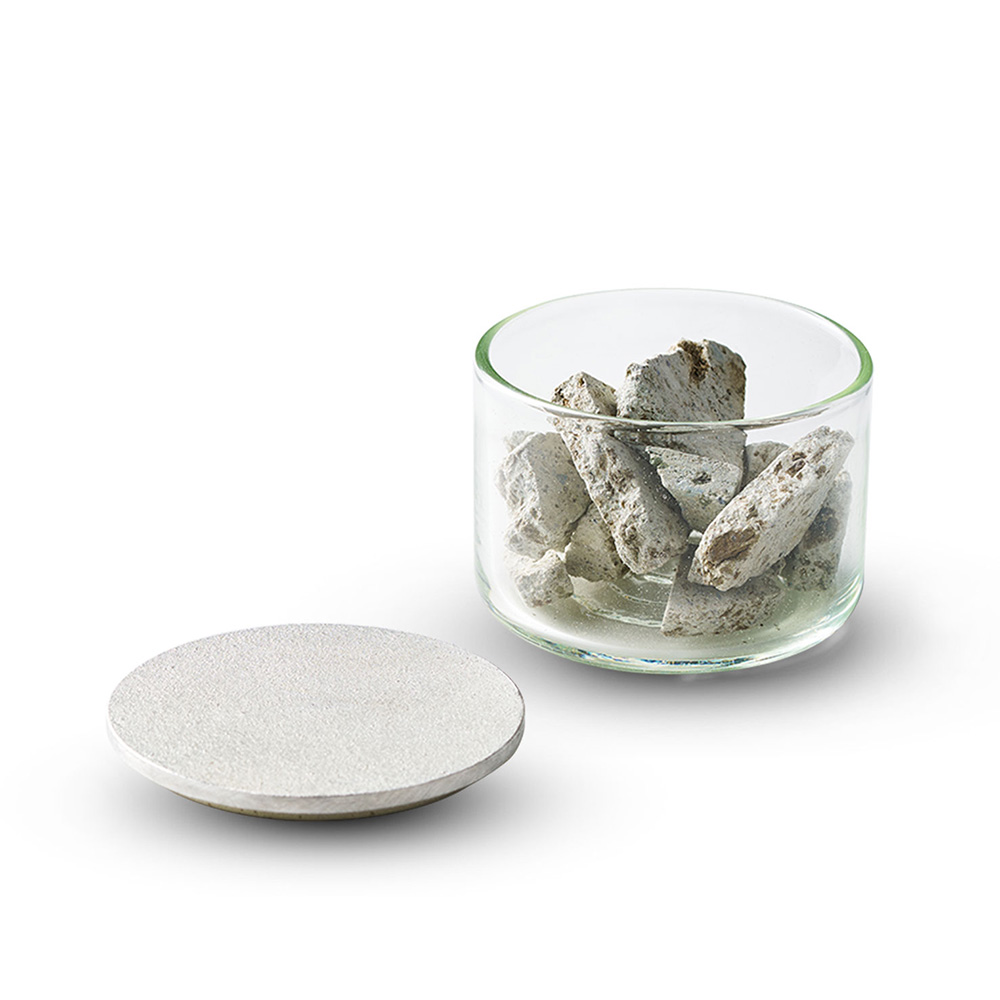 中のアロマストーンは谷石やリサイクルガラス、リサイクル錫など、環境に配慮した素材を用いて作られています。