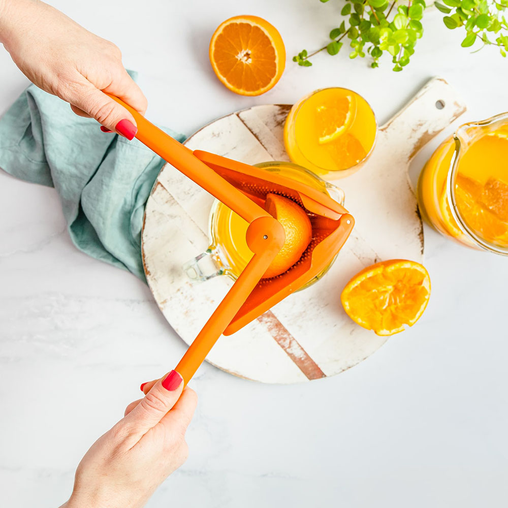 簡単に果物をプレスして、果汁を絞ることができるジューサー。オレンジからグレープフルーツ、レモン、柚子、ライムまで幅広い果実に使用できるサイズです。果汁を使うお料理や、サワーを作る際に最適!■簡単に絞れる独自の形状!手ではなく腕の力を使うため、従来の垂直に押しつぶすジューサーよりも小さな力で、手で絞るような感覚で絞ることができます。■コップに直接注いで、そのまま飲める!果汁がこぼれないように、グラスへ直接果汁を注ぐことができます。更に内蔵されたキャッチャーによりジュースがこされる為、抽出された果汁はそのまま飲むことができます。■折りたたむとフラットに!コンパクトに収まるスリムなデザインで、折り畳むと完全にフラットになります。かさばる凹凸もないので、引き出しに省スペースで収納できます。ドリームファームとは?ドリームファームは2003年にオーストラリアで創業したキッチン用品ブランドです。 『すべての不便を解消する』というコンセプトのもと、これまでの常識にとらわれない斬新なアイデアで製品開発を行っています。