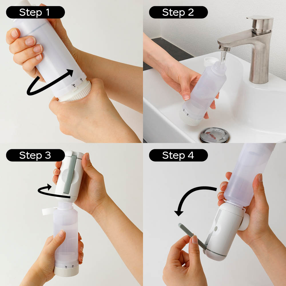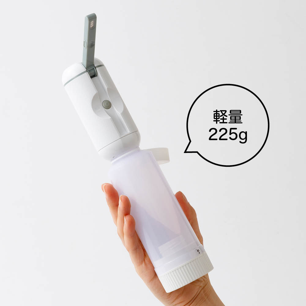 災害時や旅先、外出先で安心!どこでも使える充電式のポータブルウォシュレットです。コンパクトなのにしっかり洗浄でき、総重量225gと軽いので持ち運びもラク。ノズルは角度調整可能で使い心地にもこだわりました。どこでも清潔!充電式で便利な”持ち歩けるウォシュレット”ウォシュレットの快適をいつもあなたのそばに。万一の災害時はもちろん、洗浄便座がない海外のホテルや空港でも、これ一つあれば安心してトイレが使えます。電池不要のUSB充電式で、繰り返し使えるので経済的です。バッグにすっぽり入るコンパクト設計高さ約16cm・225gの手のひらサイズで、バックに入れてもかさばりません。コンパクトなのに、パワフルな水圧でしっかり洗浄できます。水道がなくてもOK!ペットボトルから給水可能いざという時に水道がなくても大丈夫。付属のアタッチメントを使えば、ペットボトルからの給水が可能です。もしもの時の備えに。災害時や避難所でも清潔を保てるので安心です非常時のトイレ環境も、これがあれば安心。水さえあればすぐに使用できるので、「もしもの時の備え」として持っておくのもおすすめです。たった4ステップ!直感で組み立てられる、かんたん設計(1)給水タンクを回して引き抜く → (2)給水する → (3)本体に戻してロックする → (4)ノズルを引き出すだけの簡単4ステップ。直感的な操作で迷うことなく使えます。ノズルの向きは180度調整可能!快適な位置で洗えるのが嬉しいウォシュレットは「角度」も大事。ノズルの向きを調整できるため、自分の好みの角度で使うことができます。