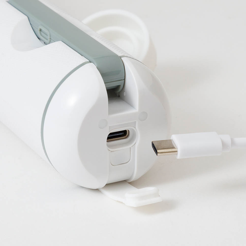 内蔵バッテリーに付属のUSB Type-Cケーブルで充電できます。※ACアダプターは付属しておりません。