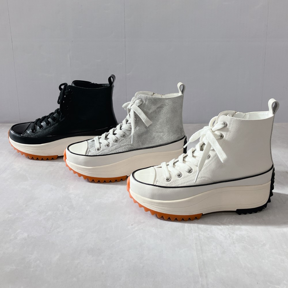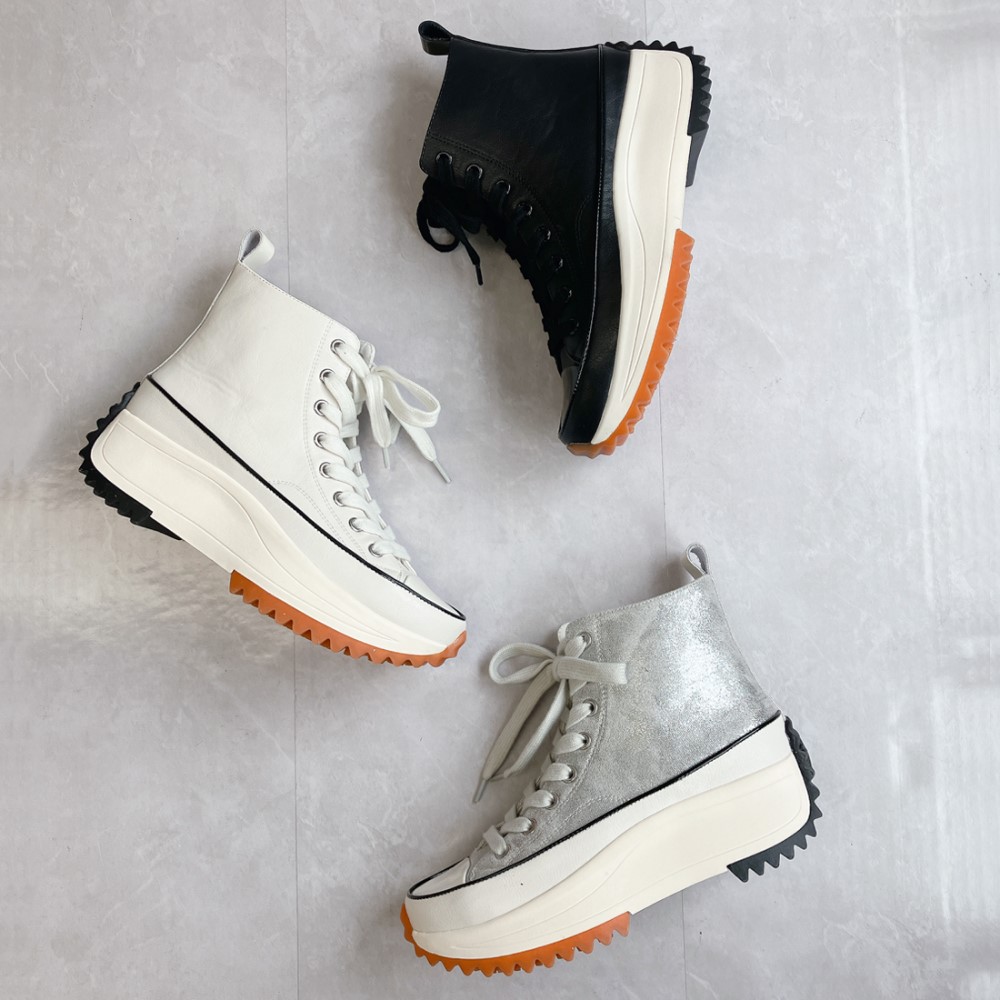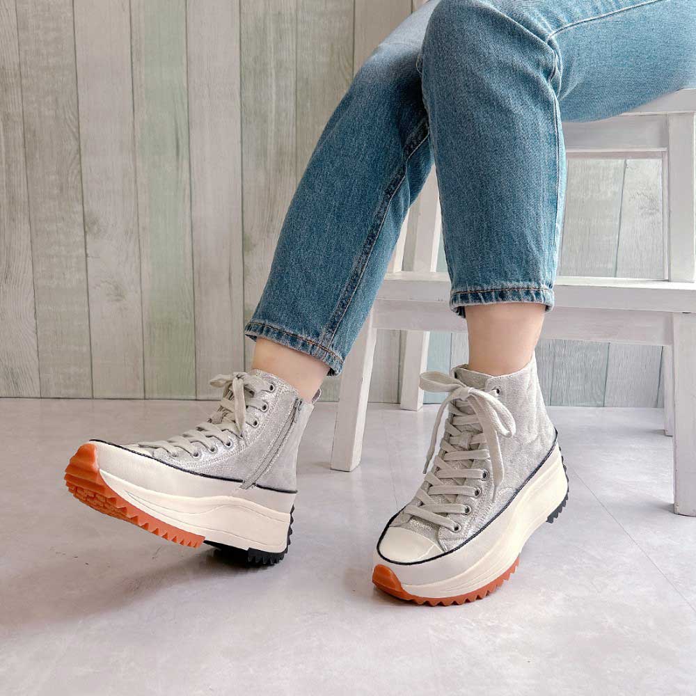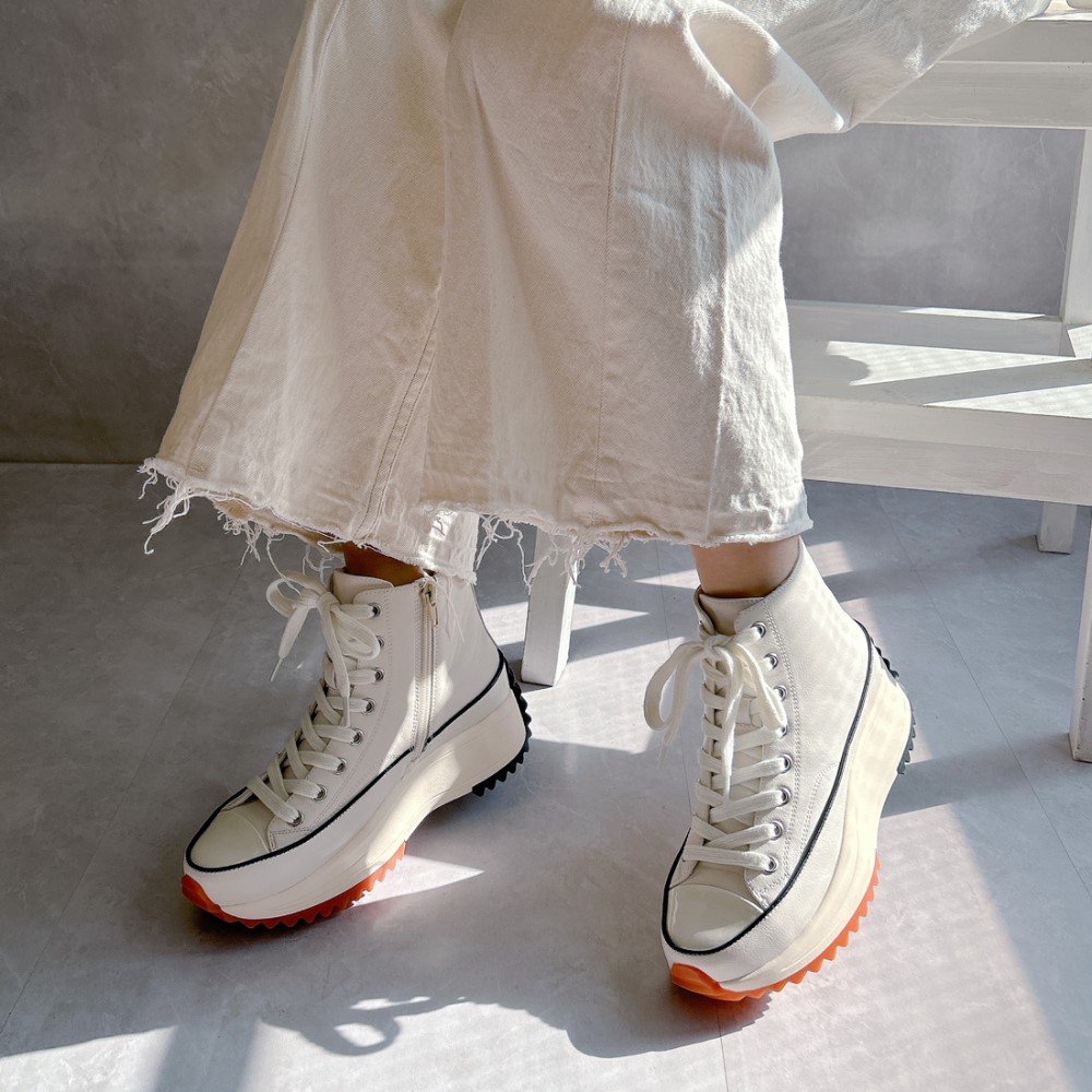 脚長効果が期待できる厚底デザイン。ハイカット仕様で足首をしっかりサポートし、高低差の少ないソールで、厚底でも安定した履き心地です。シンプルなフォルムで、カジュアルからキレイめまで幅広いコーディネートに合わせやすいのも魅力。歩くたびにふかふかとしたクッション性を感じるインソールが、長時間のお出かけにもぴったりです。