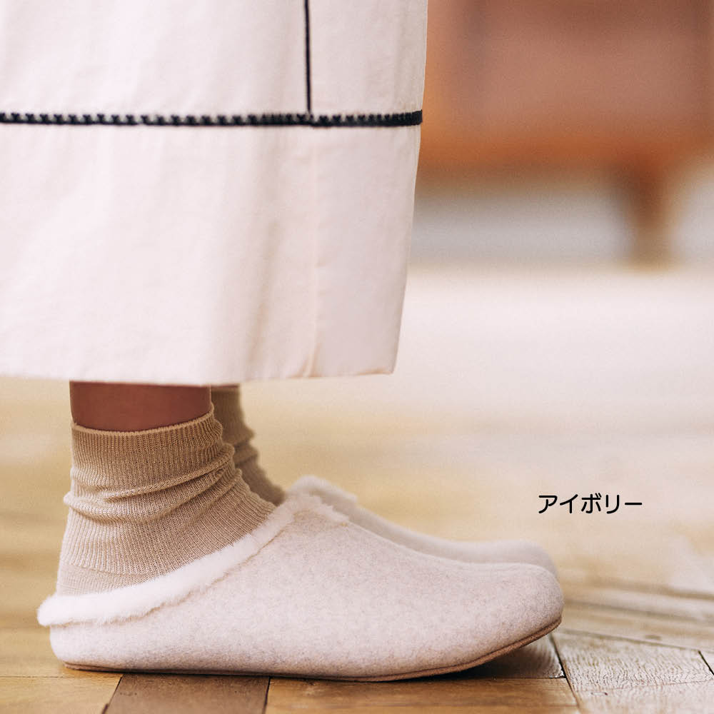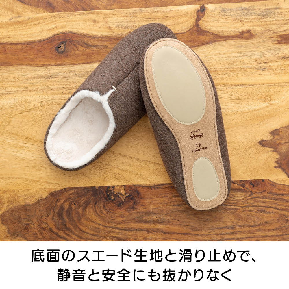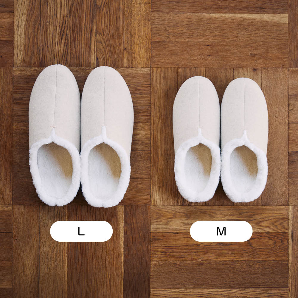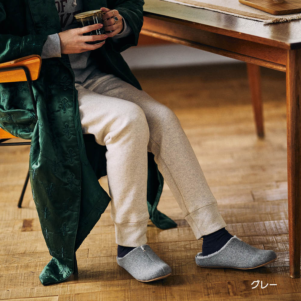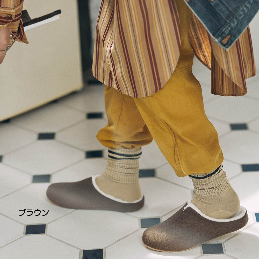 職人による手作業の製法で「歩きやすさ」を追求したスリッパroom’sに、待望の冬バージョンが登場。快適な履き心地はもちろん、インテリアに馴染むデザイン性、転倒予防、静音への配慮など、こだわりが満載です。高密度のボアを使用した、思わず素足で履きたくなる肌触りで、寒い冬に一足あれば重宝すること間違いありません。思わず素足で履きたくなる!「歩く」をとことん考えたスリッパ「脱げやすい、歩きにくい、デザインがイマイチ…」そんなスリッパのお悩みを解決したい。その想いで生まれた、ディノスでも人気の「歩く」を考えたスリッパroom’sに、寒い日に素足でも履ける冬バージョンが登場。冬のコーディネートやインテリアに合わせた、温かみのある5色展開です。職人による手作業の製法で、ぴったり馴染むフィット感を実現足を上げても脱げにくく、長時間履いても疲れにくい。履いた瞬間からぴったりと馴染む快適さの理由は、職人の手作業にこだわっているから。靴を作る時と同様に木型を使って一つひとつ丁寧に製造することで、足の甲にフィットする履き心地と美しいフォルムを実現しました。つま先への衝撃はもちろん、つまずきや転倒も予防する構造にうっかりつま先をぶつけても、物を落としてしまっても大丈夫。スリッパの先端に内蔵された「先芯」が、さまざまな衝撃から足先をガードします。さらにつまずきにくさを考えた「つま先あがり」の構造を採用。冬の寒さでかじかんだ足でも、スムーズに移動できます。「立ちっぱなしの家事で足が疲れる」そんなお悩みに応えるため、弾力性があり足の負担を減らすEVAフォームをインソールに内蔵しています。また外側には高級感があるフェルト生地を、内側には高密度でボリュームのあるボアを使用。優しいレッドにはミルクホワイト、落ち着いたネイビーにはハニーブラウンなど、生地に合わせてボアのカラーにもこだわっています。底面のスエード生地と滑り止めで、静音と安全にも抜かりなくスリッパ特有の意外と気になるパタパタ音も、心配ご無用。底面全体にスエード生地を使っているため、マンションなどの集合住宅にお住まいの方にもぴったりです。さらに滑り止めが縫い付けてあるので、フローリングの床を急いで歩いても滑りにくい仕様となっています。