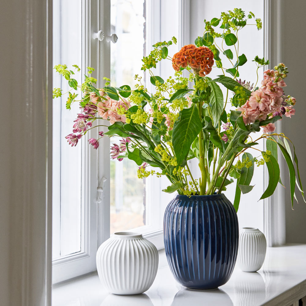 世界中で愛される『ケーラー』の花器で空間にシックな華やぎを。ケーラーのハンマースホイベースが、私たちの心を捉えました。180年の歴史と現代の感性が融合した「モダンクラシック」な佇まいは、単なる花瓶ではなく、空間そのものを豊かにするアート。この揺るぎない美しさを、ぜひ皆さまの暮らしにお届けしたいと感じています。日常の花束も美しく活けやすい程よい口径高さ21cmは、いただいたブーケなどを飾りやすい絶妙なサイズ感。程よい口径は花をふんわりとまとめやすく、初心者の方でも美しく生けられます。季節の花から個性的な枝物まで、花材を選ばず引き立てます。360度どこから見ても美しい「繊細な縦ラインと丸みを帯びたフォルム」丸みを帯びたフォルムに刻まれた繊細な縦ラインが、光と影の美しい陰影を生み出します。どの角度から見ても絵になり、花を活けていない時でさえ、空間を彩るオブジェのような存在感を放ちます。180年以上の歴史を紡ぐ「モダンクラシック」の象徴1839年創業のデンマークブランド「ケーラー」。その伝統を現代に昇華させた「ハンマースホイ」は、熟練職人の手作業とモダンな感性が融合した、まさに時代を超えて愛されるデザインです。インテリアを上質な空間へ格上げ玄関やリビングのコーナーに置けば、空間全体が洗練され、視線を集める「フォーカルポイント」に。大きめの花材や枝物を活ければ、その存在感はさらに際立ち、和洋問わずインテリアに上質なアクセントを加えます。組み合わせで広がる「あなただけの空間美」一つでも美しいですが、サイズ違いや色違いでの組み合わせがおすすめです。異なるリズムと奥行きが生まれ、まるでアートギャラリーのような空間を演出。清潔なホワイトと落ち着いたインディゴで、あなただけの特別な美を創造してください。日常に、ホッと心安らぐ瞬間を。このハンマースホイベースは、花を活ける時間を通して、あなたの暮らしに「ささやかな豊かさ」と「彩り」をもたらします。ぜひ、あなたの日常に、この美しいアートピースを迎えてみませんか。