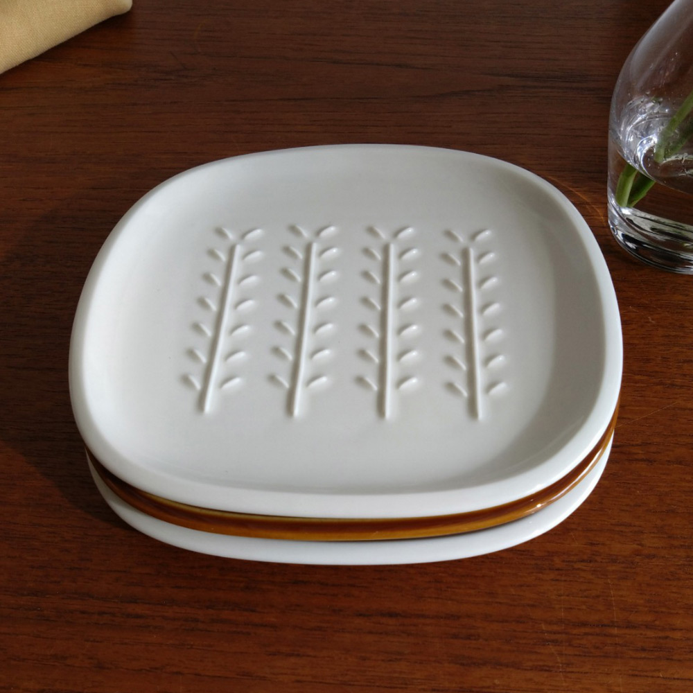 焼きたてのトーストを美味しく食べるために生まれた美濃焼のプレート。10年以上にわたり愛され続けるその確かな品質と機能性が、日々の朝食を豊かにします。トーストの「サクサク」を最後まで焼きたてのトーストが持つ、あのサクっとした食感を長く愉しむためのプレートです。表面に施された小枝模様の凹凸が、トーストと器の間に適度な隙間を確保。これにより、パンから出る蒸気の逃げ道となり、出来たてのクリスピーな食感を損なうことなく保ちます。朝食のトーストだけではありません。揚げ物にも活躍します!トーストだけでなく、揚げ物やフルーツにもその効果を発揮します。とんかつやから揚げなど、サクサク感が大切な料理を盛り付ければ、衣がベタつくことなく、その食感を最後までお楽しみいただけます。油切れも良いので、すっきり揚げ物をいただけますよ。電子レンジで使用できるので、買ってきたお惣菜の温め直しもOKです。また洗ったイチゴや水分のでるリンゴなどのフルーツやスコーンなどの焼き菓子を置くのにも活躍します。スタッキングもできますきちんと重ねて収納できるのでコンパクトに棚に納まります!飽きのこないデザインと美濃焼の品質日本の伝統を受け継ぐ美濃焼として、確かな品質で作られています。小枝のレリーフは、和洋を問わずあらゆる食卓に自然になじむ、シンプルでいて洗練されたデザインです。