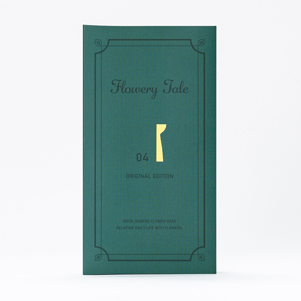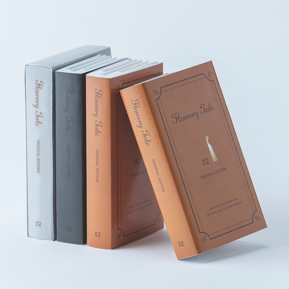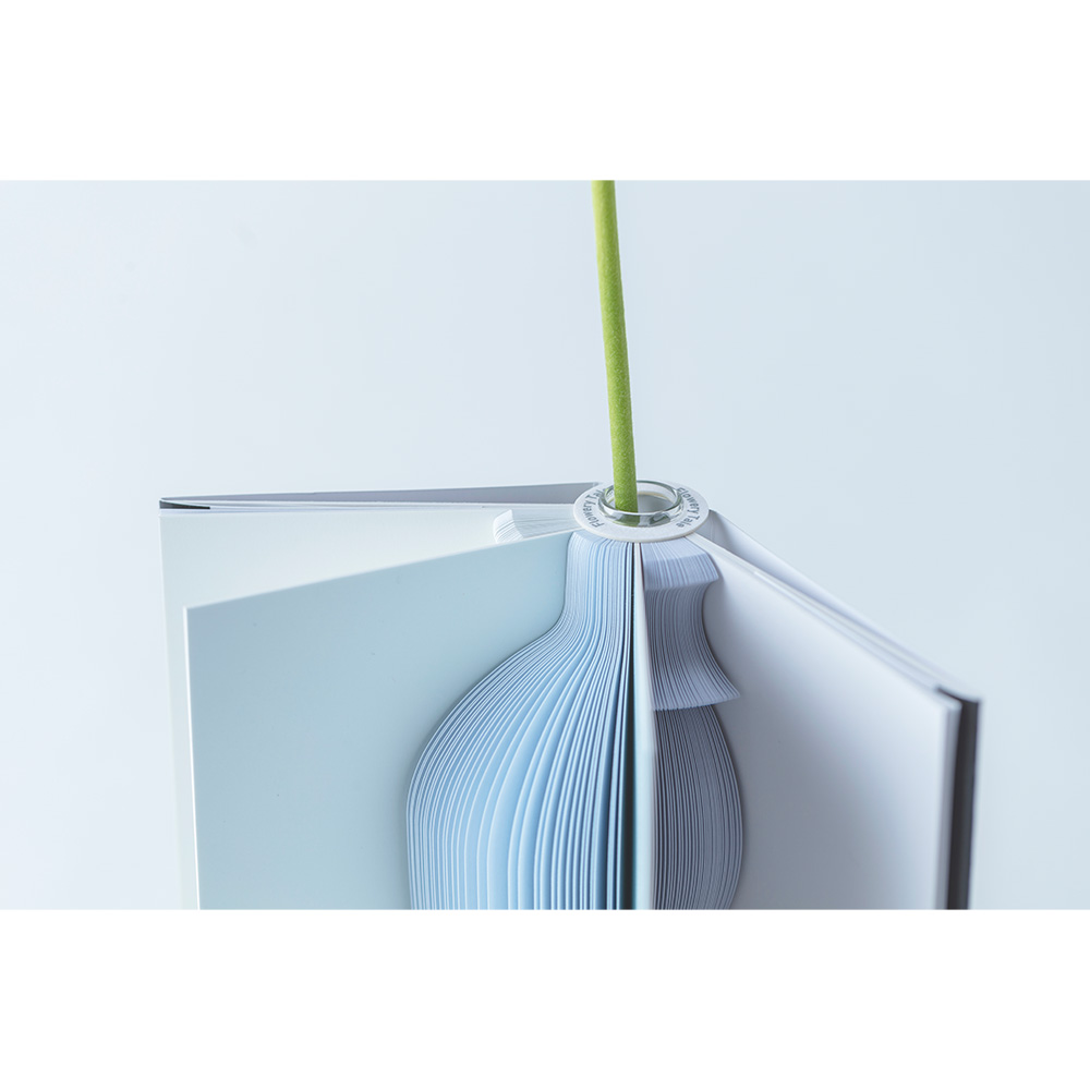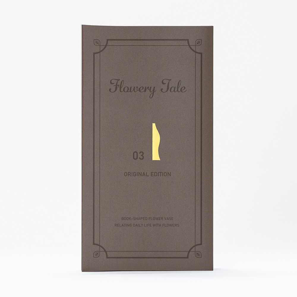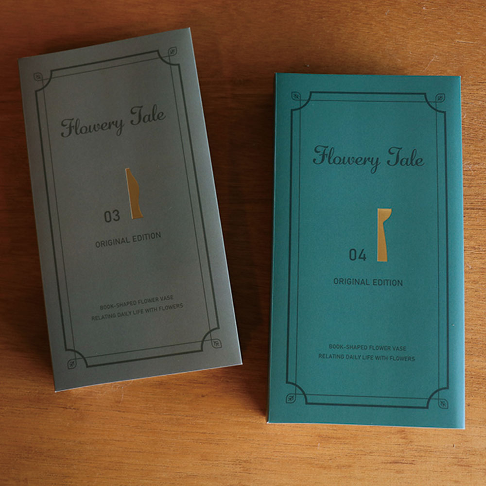 『Flowery Tale −本のように開き、花と暮らす日常を物語る花瓶−』ゆったりと流れる時間。本棚から指先で選び出し、目次にそっと目を落とす。好みのページを開き、お花を添えて一輪挿しに。お好みの形のページを開いて花を活ける、本のような花瓶です。試験管以外はすべて紙でできています。【使用方法】1. 本を開くと花瓶のシルエットが浮かび上がります。2. 試験管にストッパーを取り付け、これをカバーと背表紙の隙間に上から差し込むことで、実際に使用できる一輪挿しの花瓶となります。【選べるカタチ】1冊の本に3パターンの花瓶シルエットを収蔵しています。花瓶の上下は、片方は細め、もう片方は広めの設計となっています。本を上下逆さにしてもご使用いただけますので、花瓶シルエットは全部で6パターンの使用が可能。お花の種類やボリュームに合わせて、アレンジをお楽しみください。使用しない時は洋書のインテリアとして楽しんでいただいたり、本棚に収納いただくことが可能です。