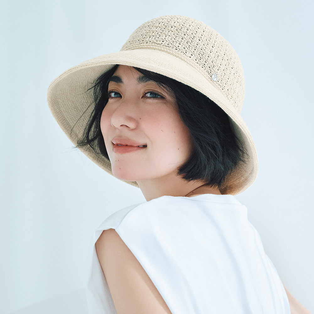 エレガントに涼やかに 今日の私にひとつ上の余裕頭部分は風が抜けるレース編みでムレにくいデザイン。つば部分は熱やUVをカットするよう内側部分に遮光芯を挟み込み、長時間でも涼やかで快適にかぶれるように設計されています。いつもの服に合わせるだけで自然体のきちんと感が整うシルエットで、お手入れもしやすいので夏の装いにぴったり。つば先は好きな形にアレンジできるワイヤー入り。Good Point内側面ファスナーでサイズ調整可能だからフィット感よくぬげにくい。
