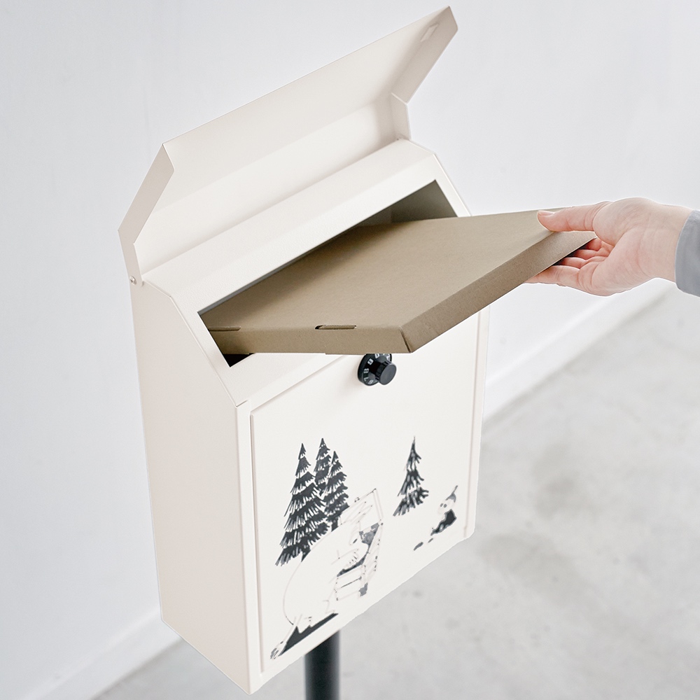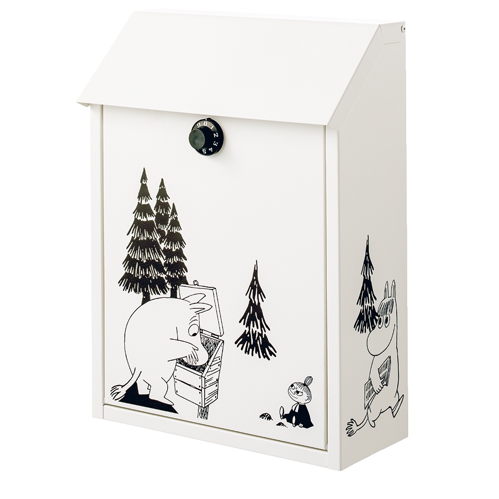 郵便も宅配の荷物もおまかせ。ムーミンの仲間たちがモノクロで描かれたおとなデザイン。宅配ボックス付きなら置き配よりずっと安心です。