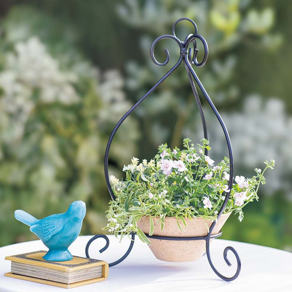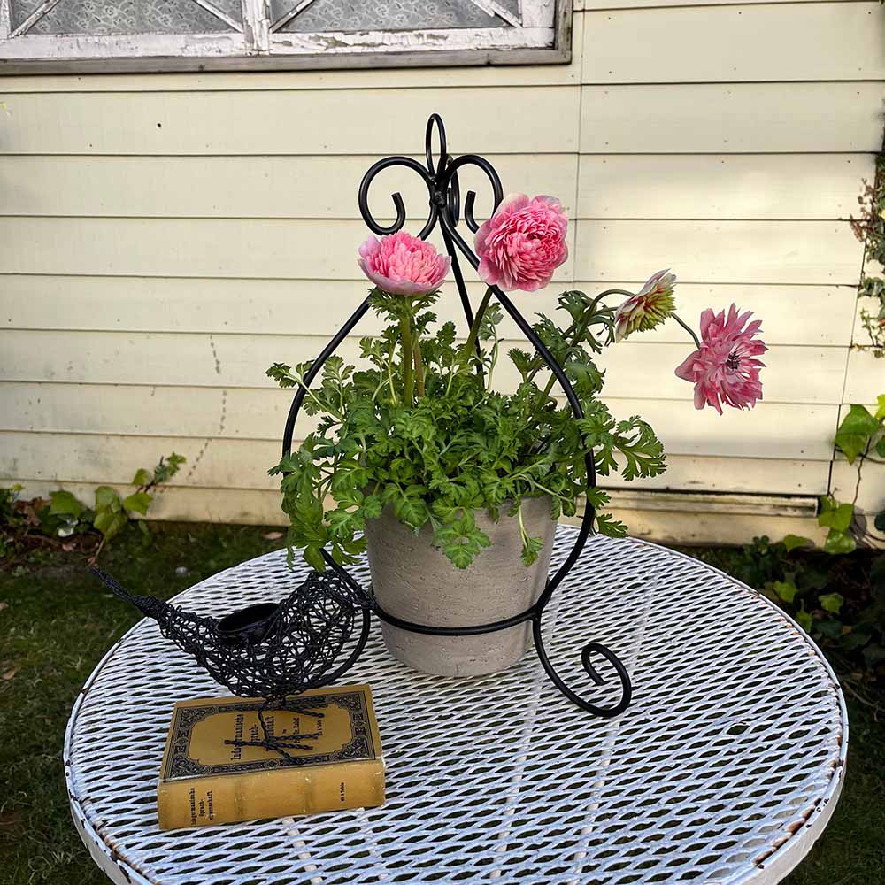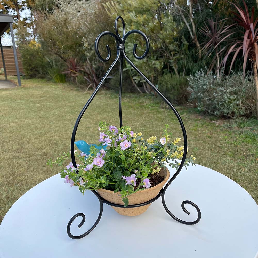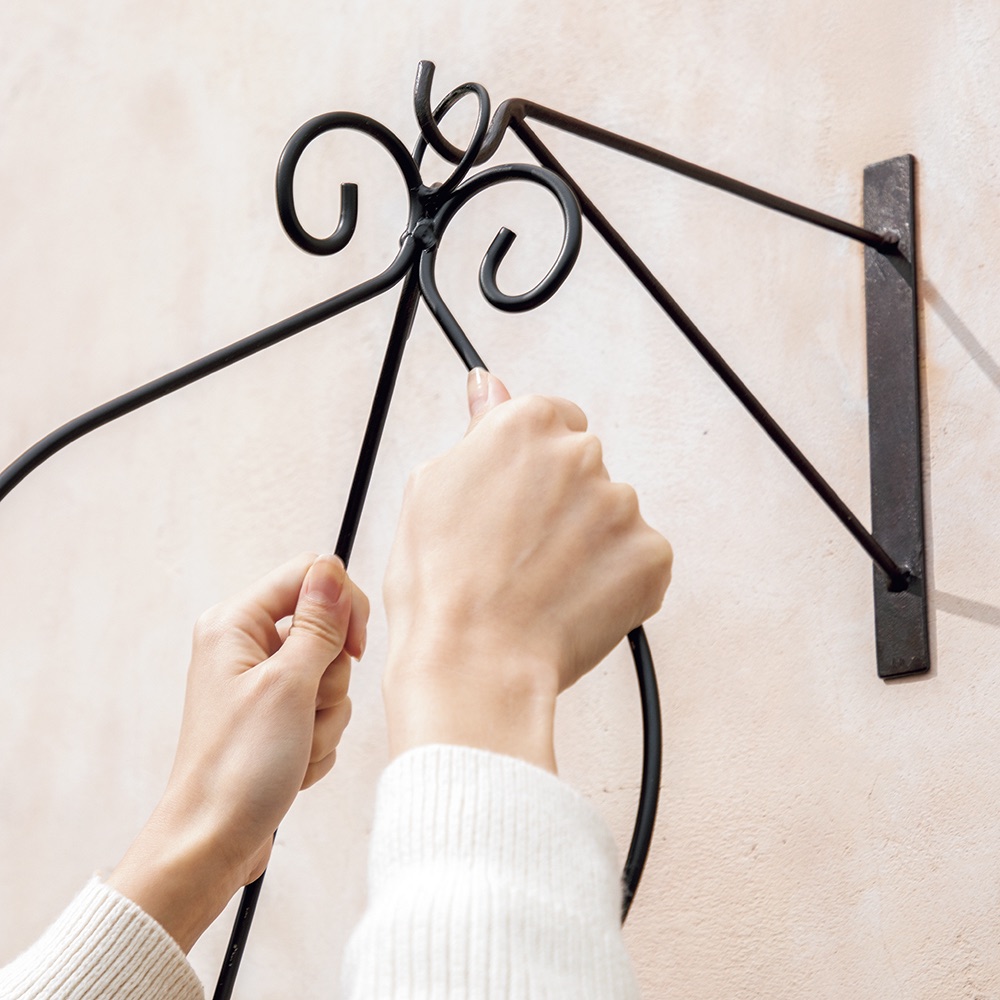 ハンギングバスケットマスター・土谷ますみさん企画!置いても掛けても可愛いアイアンフック。▼ハンギングバスケットマスター土谷ますみさん企画寄せ植え講師・土谷ますみさん企画、メーカーはベルツモアジャパン。プロの目線で生まれた本格派アイテムです。くるんとしたデザインや鉢回りの孤の広がり方は、中に入れるお花の魅力を最大限に引き立つようにこだわりぬいた角度。▼置いても可愛い、掛けても可愛いハンギング部分が円になっているから、置き型として使用しても、違和感なくおしゃれなアクセントに。壁掛けすれば目線の高さでお気に入りのお花を楽しめます。玄関に飾って、お客さんを華やかに出迎えて。1つで2通りの使い方が可能で、シーンを選びません。▼おすすめの植木鉢サイズプランター置き部分の直径…13.8cm。上部に余白を持たせたい方は、高さ10cm以下の鉢&草丈の低い植物のセットがおすすめです。……(参考)撮影時の鉢サイズ……★商品画像1枚目(掛け)テラコッタ鉢:外径19cm・底面12cm・高さ16.5cm★商品画像6枚目(置き・青い鳥)ベージュすり鉢:外径18cm・底面7.5cm・高さ8.5cm★商品画像10枚目(置き・黒い鳥)グレー鉢:外径16.5cm・底面12.5cm・高さ15cm▼ベルツモアの高品質信頼の日本メーカーによる丁寧な仕上がり。芯が詰まった太めの鉄材を使用しているから耐久性と美しさを両立します。【土谷ますみ/MASUMI TSUCHIYA】ハンギングバスケットマスター。八王子を中心に、寄せ植えやハンギングバスケット教室の講師をされています。 ブログはこちらから↓https://www.dinos.co.jp/garden/tsuchiya/