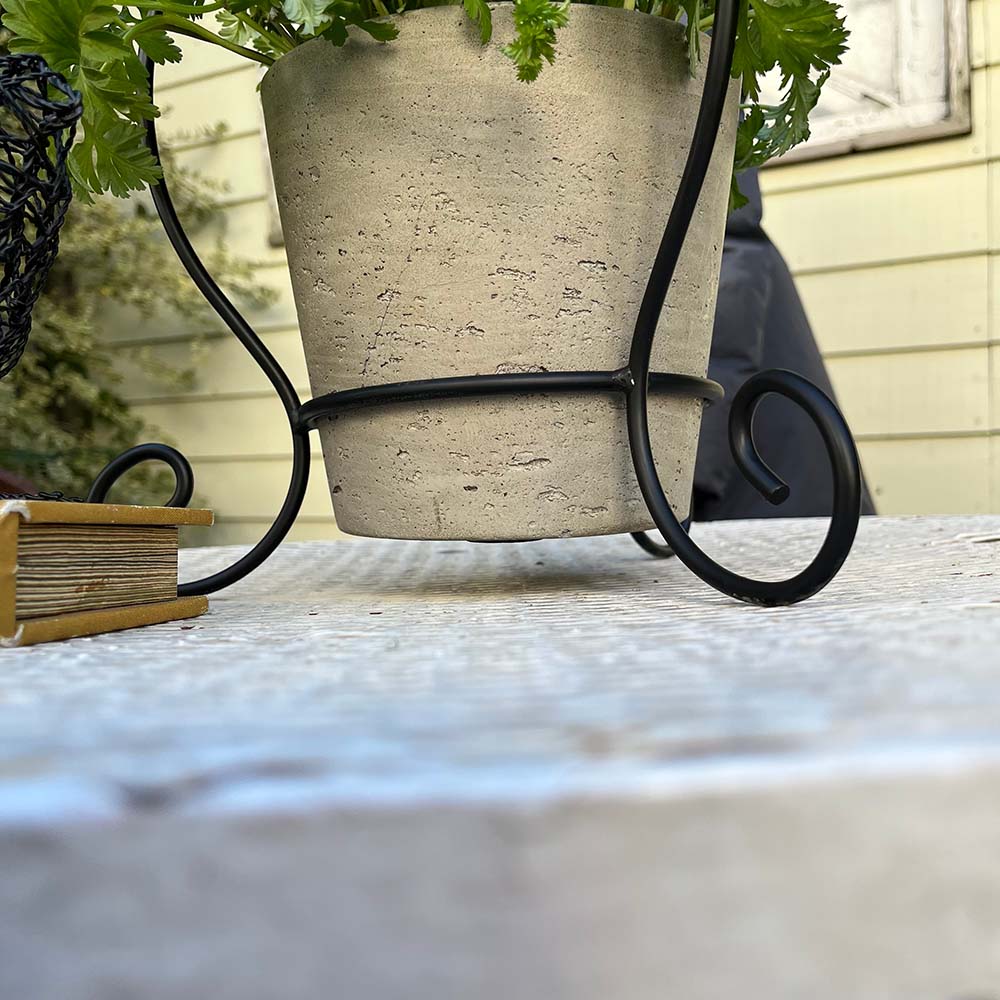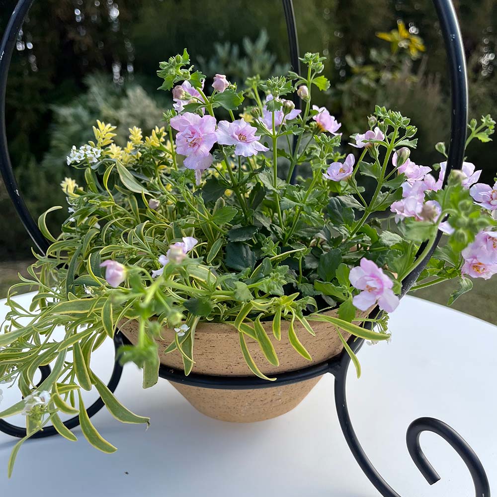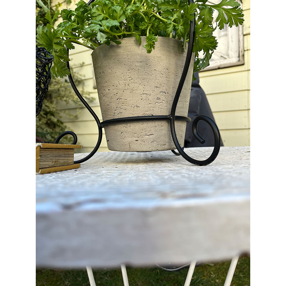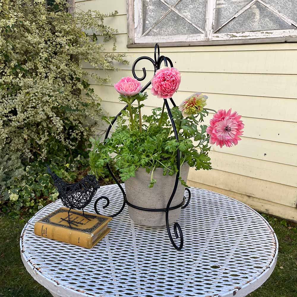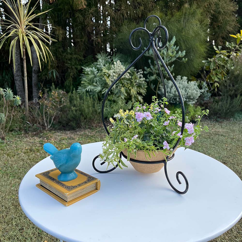 ハンギングバスケットマスター・土谷ますみさん企画!置いても掛けても可愛いアイアンフック。▼ハンギングバスケットマスター土谷ますみさん企画寄せ植え講師・土谷ますみさん企画、メーカーはベルツモアジャパン。プロの目線で生まれた本格派アイテムです。くるんとしたデザインや鉢回りの孤の広がり方は、中に入れるお花の魅力を最大限に引き立つようにこだわりぬいた角度。▼置いても可愛い、掛けても可愛いハンギング部分が円になっているから、置き型として使用しても、違和感なくおしゃれなアクセントに。壁掛けすれば目線の高さでお気に入りのお花を楽しめます。玄関に飾って、お客さんを華やかに出迎えて。1つで2通りの使い方が可能で、シーンを選びません。▼おすすめの植木鉢サイズプランター置き部分の直径…13.8cm。上部に余白を持たせたい方は、高さ10cm以下の鉢&草丈の低い植物のセットがおすすめです。……(参考)撮影時の鉢サイズ……★商品画像1枚目(掛け)テラコッタ鉢:外径19cm・底面12cm・高さ16.5cm★商品画像6枚目(置き・青い鳥)ベージュすり鉢:外径18cm・底面7.5cm・高さ8.5cm★商品画像10枚目(置き・黒い鳥)グレー鉢:外径16.5cm・底面12.5cm・高さ15cm▼ベルツモアの高品質信頼の日本メーカーによる丁寧な仕上がり。芯が詰まった太めの鉄材を使用しているから耐久性と美しさを両立します。【土谷ますみ/MASUMI TSUCHIYA】ハンギングバスケットマスター。八王子を中心に、寄せ植えやハンギングバスケット教室の講師をされています。 ブログはこちらから↓https://www.dinos.co.jp/garden/tsuchiya/