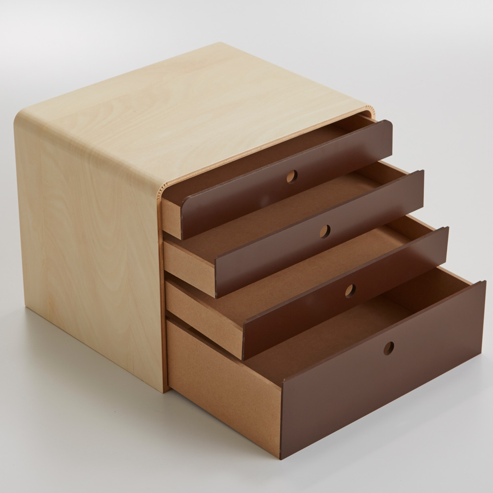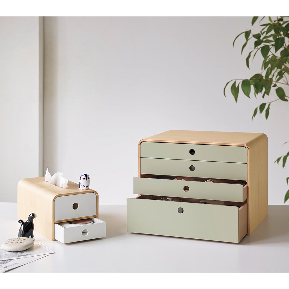 なめらかな曲木が特徴の収納BOX。A4ファイルが入るので、デスクの分類収納に便利。穏やかな木の質感で、生活感をやさしく隠します。なめらかな曲木が魅力の端正なA4ファイルケースA4ファイルごと収納できるサイズの曲木のファイルケース。側面が曲木でできているのでどんなインテリアにも美しく馴染みます。リビングにも馴染んでくれる曲木のあたたかさ側面・上部にかけて曲木で作られているので、棚に置くだけで温かみを感じられるデザイン。HOUSE STYLING企画の商品です。ちょっとしたすき間への収納にもぴったり意外と使用する機会の多いA4サイズ。ファイルケースサイズも入る規格なので、領収書や手紙・DMの整理、家のことやお子様の学校の書類などの整理にも◎小物までたっぷり収納ができる深さ一番深い段は7.5cm、浅い段は2.5cmと厚さのあるものも、ごちゃつく小物類もたっぷり収納ができます。※画像の仕切りはお手持ちのものを使用いただいています。曲木とMDFで作られたスムーズな引き出し、オフィス使いにもおすすめMDF(木を加工した板)に塗装された引き出し。金属は使われていないので、すーっと引き出すことが可能です。スムーズな引き出しは国産ならではの技術。ホームオフィスでもストレスなく使用いただけます。書類の内容や家族で分類収納できます段によって分類収納がとっても便利。上から家族やご夫婦で入れる場所をわけるのもいいですよね。引き出しは指をひっかけて開けるデザイン取っ手が飛び出ていないので、スマートに見えるシルエットです。リビング・玄関・オフィス・寝室とあらゆるシーンにリビングはもちろん、玄関で鍵や郵便物を整理したり、寝室などのパーソナルスペースで文房具や雑誌・ポスターなどを入れたり。実用的ながら、趣味使いにも。今人気の北欧インテリア・ナチュラルインテリアの雰囲気にも馴染んでくれますよね。■なぜ曲木が人気?他にない曲げ木デザインは北欧のデザイナーズ家具などにも使用されるデザイン。 柔らかさや穏やかさを演出できることで人気となっています。「木の質感が穏やかで大満足です。」「色やデザインにこだわることで、部屋のイメージを崩さずすっきりと収まりました。」「写真で見るよりも木目が綺麗で実物の方が質感が良く満足しました。」