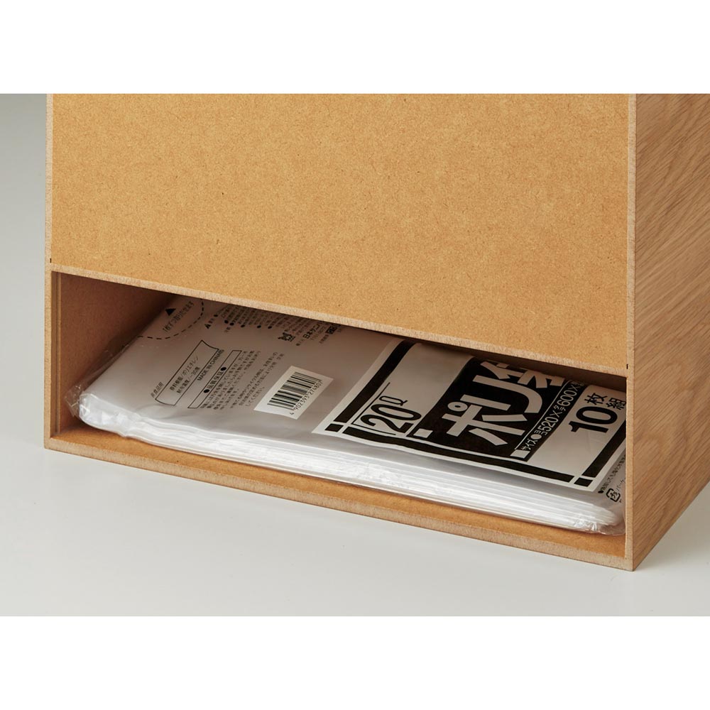 背面には隠し収納付きで、ゴミ袋のストック収納にも◎