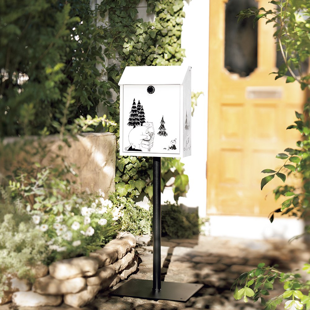 郵便も宅配の荷物もおまかせ。ムーミンの仲間たちがモノクロで描かれたおとなデザイン。宅配ボックス付きなら置き配よりずっと安心です。