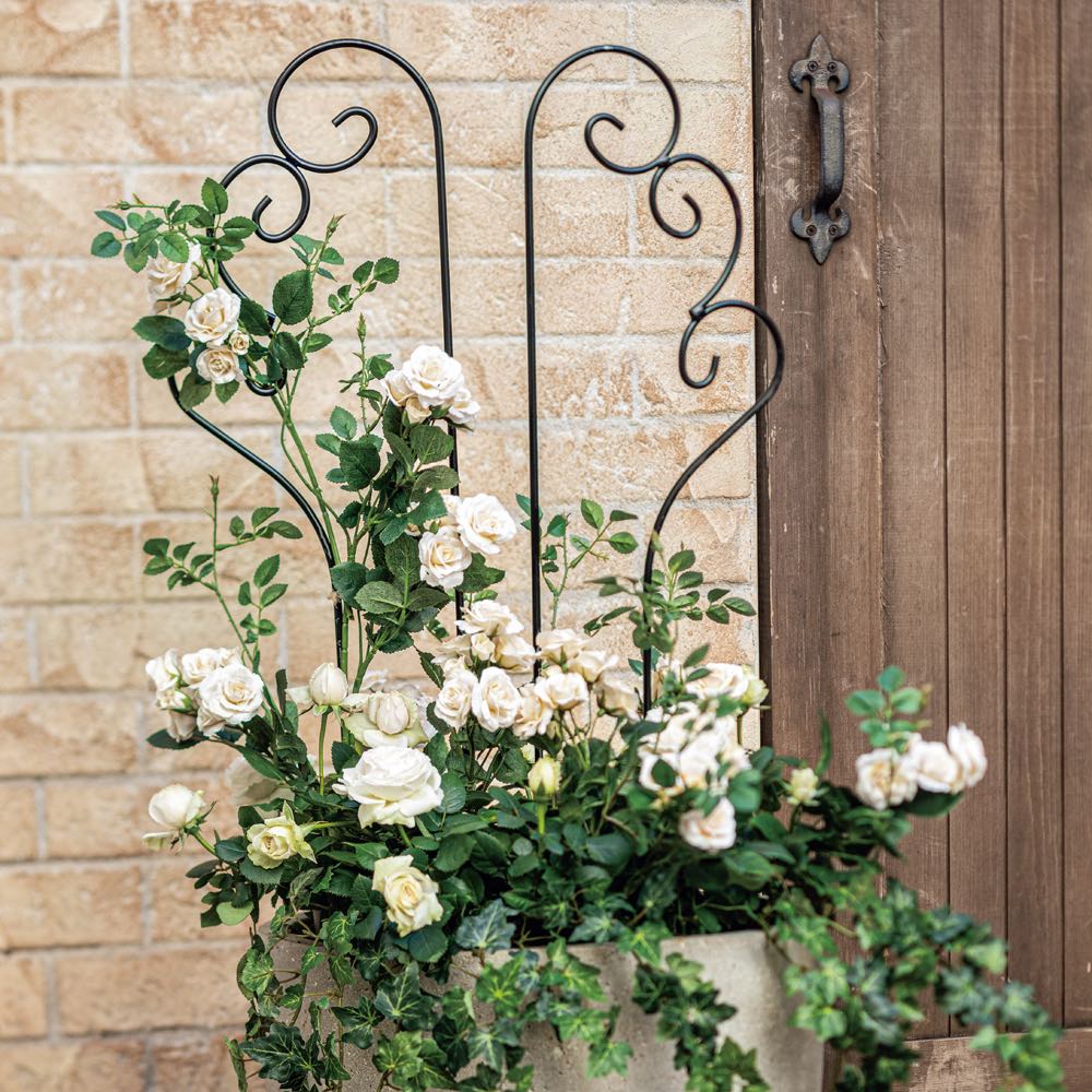 【ベルツモア×dinos】2枚を左右対称に使うことで天使が羽を広げたような形になるトレリス天使の羽をイメージしてデザインしました◆2枚を左右対称に使うことで天使が羽を広げたように素敵なシーンが生まれる「エンジェルウィングトレリス」。◆トレリスの近くにエンジェルのオーナメントを置いても素敵。バラにも負けない頑丈さ◆可愛らしい天使の羽のデザインの一方、しっかりしたつくりと頑丈さで安心してバラも誘引出来ます。信頼のベルツモアジャパンの商品◆国内で職人が手作りしたタフな作り。◆日本のバネメーカーが創業70年の経験を生かして、国内の工場で職人が1点1点丁寧に仕上げている、こだわりのガーデニング用品。◆中に空洞がなくしっかり中の詰まった無垢材の鉄材を使用。◆工業用にも使われるほどの強度で長くご使用いただけます。手に取れば、丁寧な仕事ぶりに納得いただけるはず!