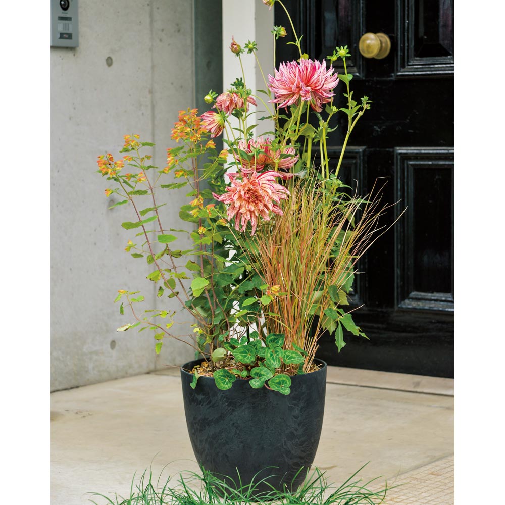 まるで石のような見た目なのに、とっても軽い!マットな質感で植物をおしゃれに見せてくれる、アートストーンプランター。◆天然石のような質感!なのに軽い。・ストーンパウダーを混ぜ込んだ樹脂製。・素材感たっぷりなのに、片手でひょいっと持ち上げられるほどの軽さ。◆植物と相性のいい2色展開・ラスティブラウンテラコッタ風のイメージ。黄色やオレンジ、白い花の寄せ植えに。グラス系をメインに据えた寄せ植えでモダンにまとめても。・グレーモダンな雰囲気。ラベンダーなどのパープル系、ホワイトの薔薇などに。リーフのみの寄せ植えも素敵です。シンボルツリーを植えても。