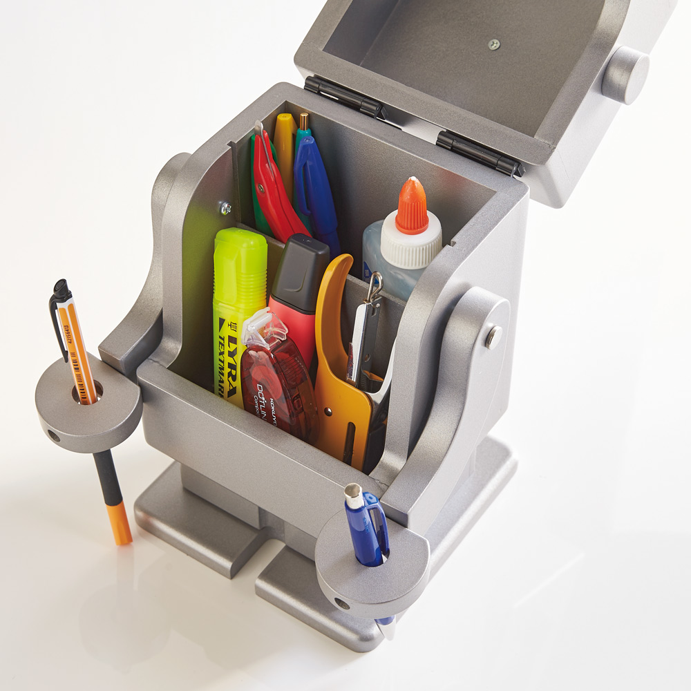 左から(イ)ゴールド (ア)ピンク ピコ卓上収納ロボは卓上タイプ。文具を入れれば勉強も楽しくなる!