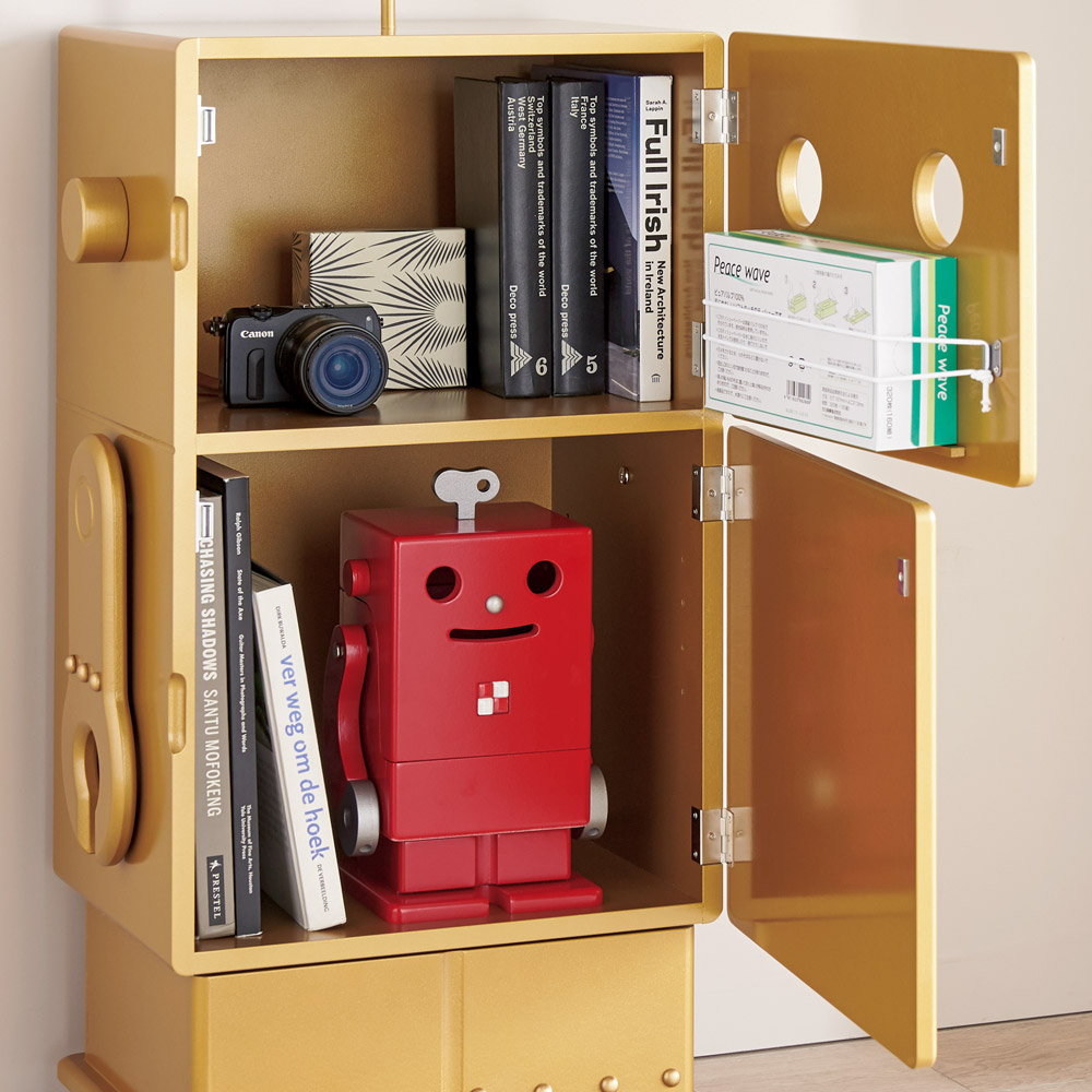キッズや大人にも人気の「収納ロボ:テーブル上で使えるミニサイズ」にインスタ映え間違いなしのキレイ色ピンクとゴールド!コンパクトながら、卓上で散らかりがちな文房具やティッシュ、スマホなどの小物収納にぴったりです♪見るたび使うたびに微笑むほどの可愛さ!パッと目を引くキレイ色でインスタ映えする事間違いなし♪キッズはもちろん、大人にも人気の「収納ロボ」コンパクトサイズの登場です!今回トレンドカラーのピンクとゴールドの2色をご用意。ここでしか買えない限定色です。子供の学習机や、オフィスのデスク、ダイニングテーブルの上に置いてもポップでおしゃれな印象に♪ロボット型で楽しくお片づけできる「ピコ」くんの 収納スペースは3か所♪(1)顔部を開けると…文具や小物収納に。スマホを入れて音楽をかければ、音が増幅します。(2)脚部を開けると…一見脚にしか見えませんが、ここも引き出し収納スペースとして使えます。(3)腕部は…ペン差しとして使えます。(4)背部は…ポケットティッシュを収納可能…まるでジェット噴射のような、カワイイ見た目に。熟練職人が1点1点を 丁寧にハンドメイドで仕上げます♪原産地は、家具の名産地として名高い静岡県。古くは徳川家康公が、駿府城を築城する際に、日本各地の名工を呼び集めたことがルーツと言われています。加工も塗装も組立も、静岡の熟練職人が使い手に想いを馳せながら、1点1点全て手作りで行なっています。ピコにも「ほぞ組」という伝統的な技法が用いられていることで、高い強度を誇り、長くお使いいただける頑丈な造りになっています。丸みを帯びた優しい仕上げや、ムラのない美しい塗装、使い勝手にこだわった細部の工夫など、クラフトマンシップが宿った温もりの溢れる収納ロボ。完成品の状態で、真心を込めてお届けします。