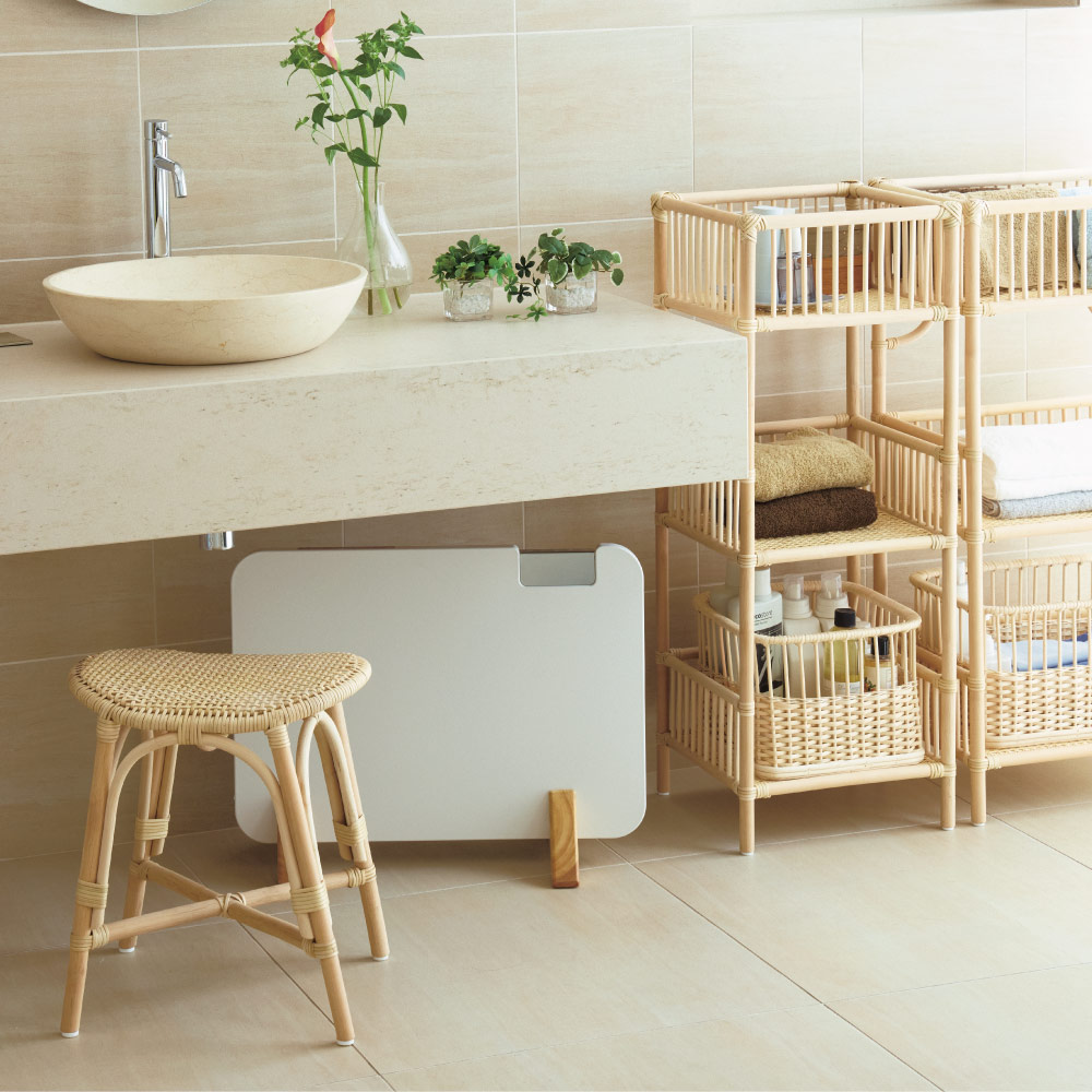 自然素材のやさしさと、伝統職人技が生み出す上質な心地よさ。ツルヤ商店の「籘楕円スツール」は、通気性と使いやすさにこだわったデザイン。軽量で場所を選ばず使え、毎日の暮らしを快適にサポートします。山形生まれの確かな品質です。創業120年以上の伝統が生きるスツールツルヤ商店は明治40年創業。長年培われてきた熟練の職人による技術が受け継がれています。「オーバルスツール」は、その技術力を生かした製品です。快適な座り心地と機能的な設計ひとつひとつ手作業で編み込まれた座面は、通気性に優れた構造で、快適な座り心地を実現しています。高さは約40センチで、立ち座りがしやすい設計です。軽量で持ち運びしやすい重さは約1.3kgと軽量なので、移動や持ち運びも簡単です。通気性の良さから、洗面所での利用にもおすすめされています。山形市内で一貫生産された地場産品本製品は山形市内の工場で、材料の選別から編み、組み立て、磨きまで全ての工程を一貫して実施しています。地域のものづくりに根ざした品質が特長です。
