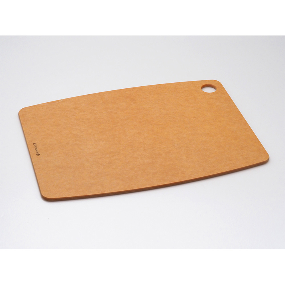 天然木の風合いと高い耐久性ウッドファイバーカッティングボードは、天然木の繊維を合成した特殊素材を使用しています。しっかりとした硬さと、長く愛用できる耐久性を備えた一枚。プラスチック製の製品と比べて、深い傷がつきにくい素材です。いつも清潔、水切れの良さ水はけが良く、お手入れも簡単。乾きやすいので、使った後もすぐに収納できます。JIS Z 2801検査済みです!JIS Z 2801とは、抗菌加工された非繊維製品の表面における抗菌性を評価するための試験方法です。この試験では、黄色ブドウ球菌と大腸菌の2種類の菌が用いられます。第三者機関においてこの規格に基づいて試験を行った結果、抗菌性能が認められました!(検査機関 一般財団法人カケンテストセンター)キッチンを彩る美しいデザイン落ち着いたカラーとシンプルなデザインが、どんなキッチンにも違和感なく馴染みます。本体の端に穴が開いているので、吊り下げ収納も可能です。厚みは約6mmと薄く、収納の際に場所を取りません。用途広がる多機能まな板食材によるにおい移りも気になりにくいので、サイズごとに使い分けが可能。まな板としてはもちろん、プレートとしてフルーツやクッキーを乗せたり、耐熱温度170℃の耐熱性を活かしてカップやポットを置くこともできます。(調理直後の鍋やフライパンは置かないでください)使い勝手のよいサイズバリエーションS・M・Lの豊富なサイズ展開で、お好みや用途に合わせてお選びいただけます。
