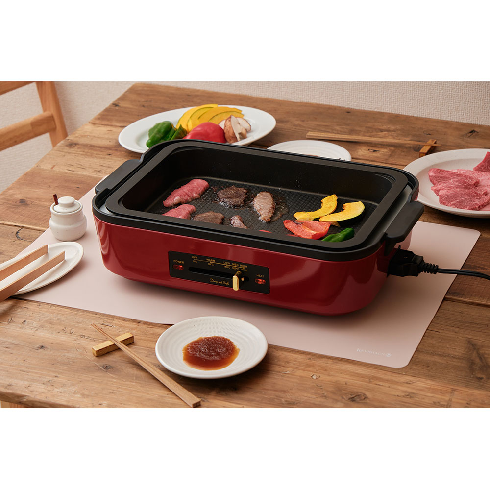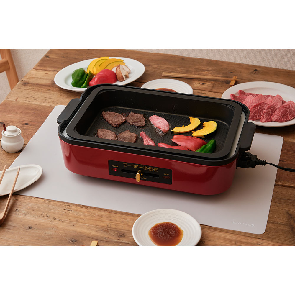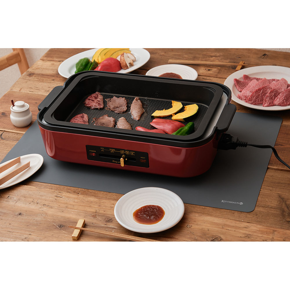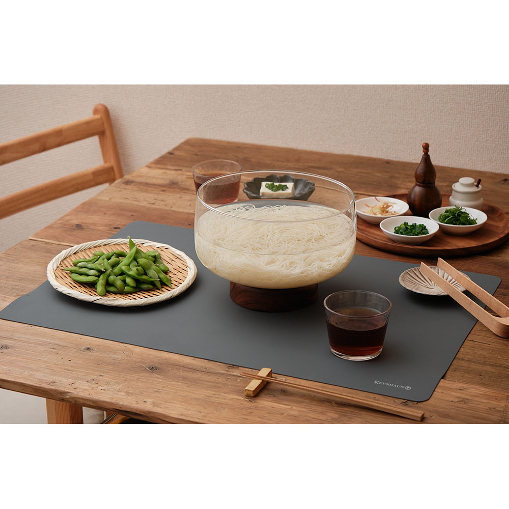 ホットプレートやカセットコンロ使用時の熱や油ハネ、タレの汚れからテーブルを守る60×40cmのシリコンマット。耐熱220℃で安心、お手入れ簡単&丸めて収納もOK。ディノス限定のシックなダークグレーで食卓の印象もワンランクアップ。テーブルを守る頼れる一枚カセットコンロやホットプレートを囲む楽しい食卓。でも、テーブルの熱や油ハネ、タレの飛び散りが気になることはありませんか?このシリコンマットなら、耐熱220℃の安心素材が、大切なテーブルをしっかりガードします。お手入れ簡単&オールシーズン活躍油やタレが飛んでも、サッと拭くだけのお手軽さ。さらに、大皿や鍋料理の汁もマットがキャッチ。年間を通してさまざまな料理シーンで活躍してくれます。使わない時も場所をとりませんこのマットは、くるくる丸めてコンパクトに収納が可能。便利な穴付きで、フックに掛けて乾かすこともOK。丸ごと水洗いできて、毎回清潔に使えます。食卓を引き立てる限定カラー落ち着いたダークグレーはディノスだけの限定色。どんなインテリアにもなじみ、ワンランク上のおしゃれな食卓を演出します。
