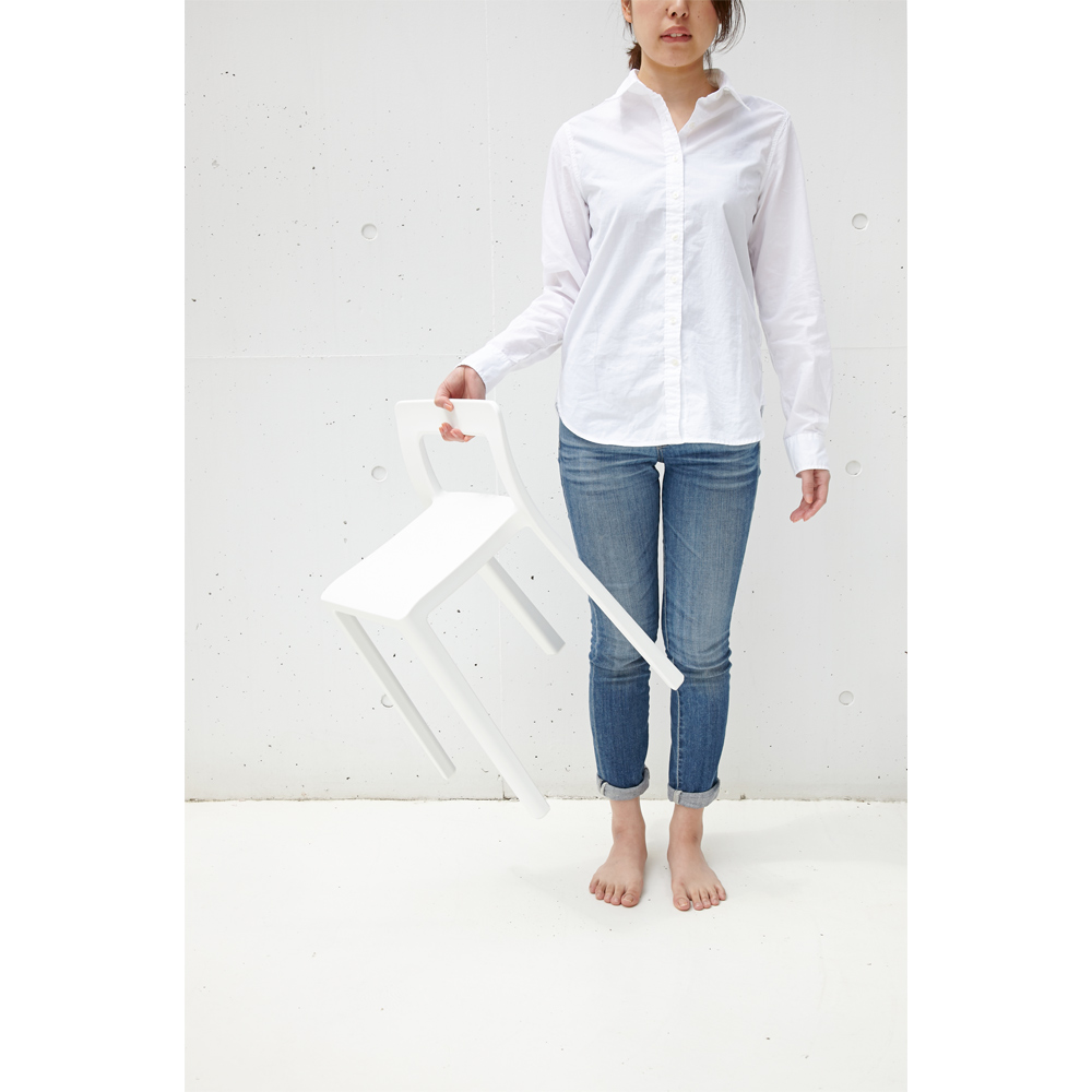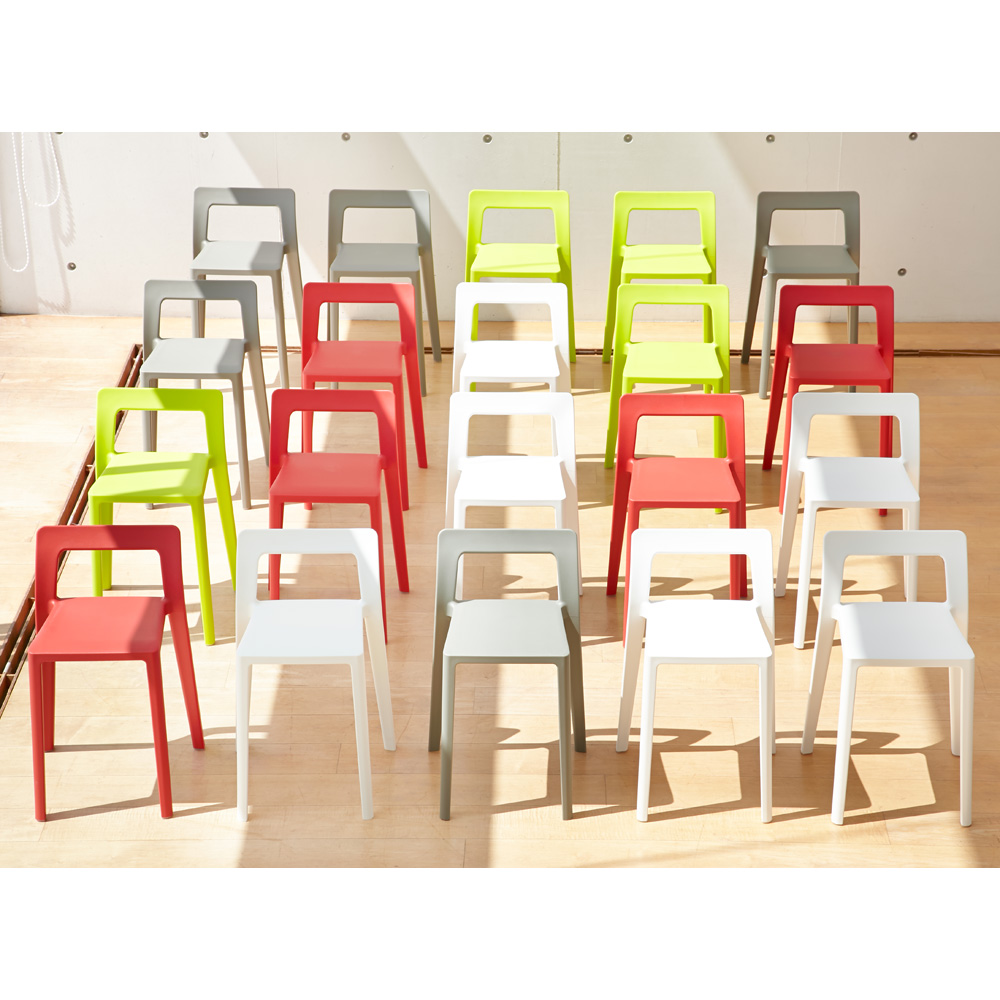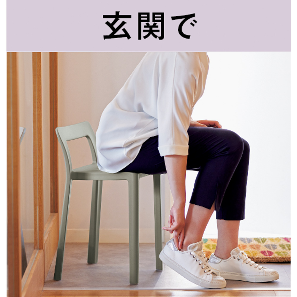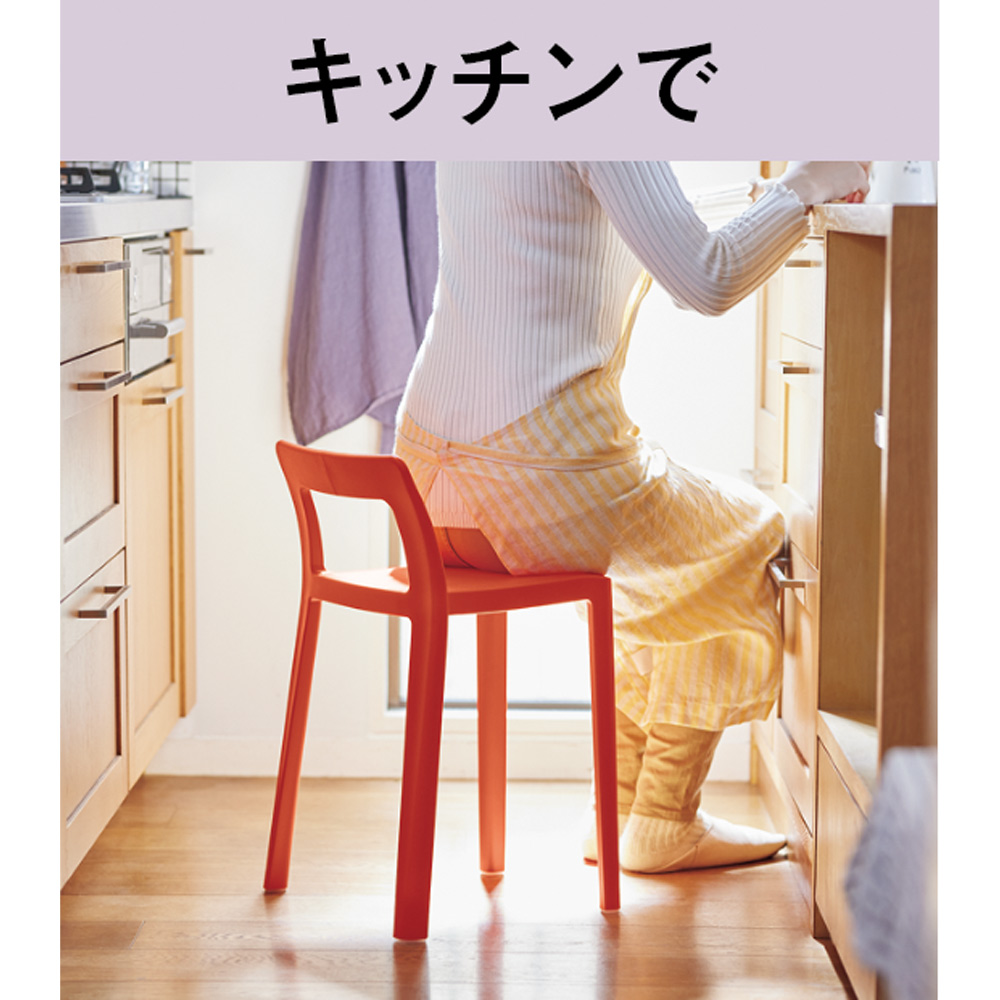 ミニマルに重ねられるスタッキングチェア。コンパクト&軽量なのにしっかり座れて、来客用にとっても重宝します。イワタニマテリアルのライフデザインプロジェクト「I'mD(アイムディー)」ブランドのENOTSシリーズです。インテリアとしてさりげなく、しかし存在感のある「ENOTS」シリーズ。ミニマルチェアは、小さくてもしっかりと座れる樹脂製チェアです。コンパクトで軽く、場所を取らずスマートに収納できる樹脂製チェア。キッチンや玄関に置いたり、来客用にしたりと様々な使い方ができそう。4脚重ねた時の座面の高さは約51cmと、ダイニングテーブルの下に入る高さです。ENOTS(エノッツ)ミニマルチェアの特長コンパクトで軽い1脚の重さは、わずか2.1kgと非常に軽く、片手でも楽に持ち運べます。軽量なのにとても頑丈なつくり樹脂製とあなどるなかれ、耐荷重はなんと100kg。インテリア性だけではない本物のモノづくりは、さすがイワタニマテリアルです。日本のブランドが手掛けているから座面高さは日本人好み海外ブランドの樹脂製チェアは、座面の高さが45〜46cmのモノが多く、実際座ってみると「あれ?」高いな…と思う方も多いはず、それもそのはず、体格はもちろん、靴を履いて座る文化の海外とは違い、日本は靴を脱いで座ります。こちらの座面の高さは約40.5cmで女性の方でも力まずに自然の姿勢で座ることができます。日常使いのイスにとっては意外と重要な問題ですが、その点も日本で企画し、日本で製造しているだけあって、しっかりと押さえています。背もたれの高さとカーブが絶妙ですあれ?背もたれが低いなと思うかもしれませんが、座るとわかるのですが、この背もたれの高さでもしっかりと腰をささえてくれます。その理由は背もたれの絶妙なカーブが身体にフィットするからです。リラックスチェアと違い、用途としては、お食事やキッチンでの作業時、玄関先での腰掛けなどがメインのシーンだと思われますが、その用途であれば、想像以上にしっかりと支えてくれる感覚があると思われます。そしてこの背もたれの高さは後ろを向いた時の身体の自由度も体感することができるでしょう。急な来客時に大活躍ミニマルチェアは、最大8脚までスタッキングが可能です。コンパクトに加え、このスタッキング数が可能なので日常では場所も取らず、急な大人数の来客時こそ最大の魅力を発揮することでしょう。※4脚重ねた時の座面の高さは約51cmと、ダイニングテーブルの下に入る高さです。選べるカラーリングミニマルチェアは、全4色。この配色があれば、モダンでもナチュラルでもポップでも、様々なテイストに対応してくれます。I'mD(アイムディー)ブランド紹介アイ アム デザイン。(I' am design.)もっとすてきな暮らしのために飾らない美しさと機能性をそなえた生活用品をデザインしたブランドです。I'mD(アイムディー)ブランドコンセプト人がつくりだすあらゆるモノは、デザインされている。あなたの部屋に置かれている家具・家電・小物。今、着ている服。いつも使っている道具。この世界のどこかで、それらは誰かがデザインし、誰かがつくっている。そして、それらは選びとったあなたの好みやセンスを映し出して、そこにある。あなたの求める便利さ・美しさ・価格。どの要素を満たしていたのか、すべてを満たしていたのか、あるいは妥協があったのか。誰もが「コレだよ。コレが欲しかったんだよ」と思えるモノに出会いたいと願っている。お気に入りのモノたちに囲まれて暮らしたいと望んでいる。I'm D(アイムディー)は、イワタニマテリアルがそんな声にお応えして始動したデザインプロジェクト。美しく、そして機能的な生活用品。それを手にしたとき、ひざを打ち、胸を打つ製品をデザインしたい。もっとすてきな暮らしのために。バイヤーズコメントENOTSサイドテーブルと同様ディノスで人気のENOTSミニマルチェア。最大の魅力は日本のライフスタイルを考え尽くした上で国内生産でつくられたということ。そして、デザイン性を重要視しながらもコストパフォーマンスとモノとしてのクオリティーの高さを両立している点にあると思います。製造側とデザイン側とマーケティング、そのすべてを両立しているからこそこれだけの人気があるんだなと、製品化に関わる方達のまっすぐな姿勢に感服させられます。それもそのはず、I'mDは、モノづくりのプロの岩谷マテリアル(株)が立ち上げたライフデザインプロジェクトで、そのプロデュースには数々のメーカーをプロデュースしてきたアッシュコンセプトの存在があります。これからも生活の中にデザインを提案してくれるであろうブランドから目が離せません。
