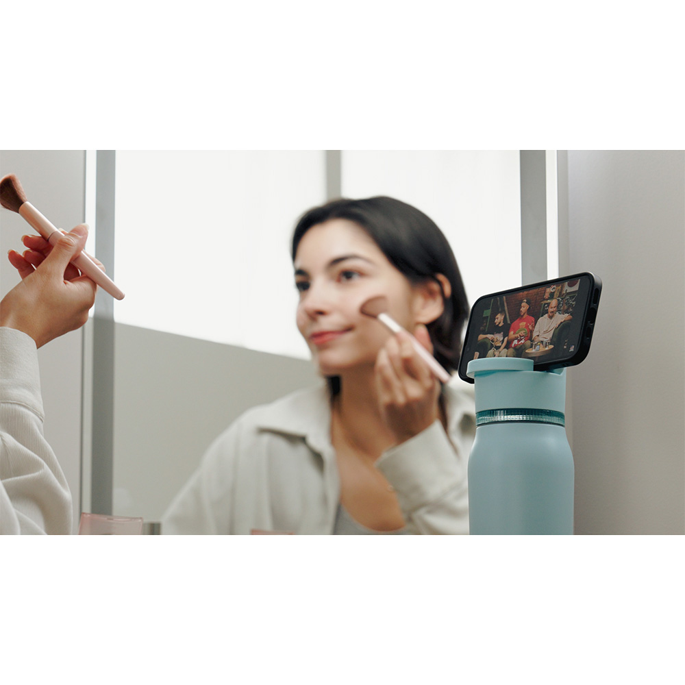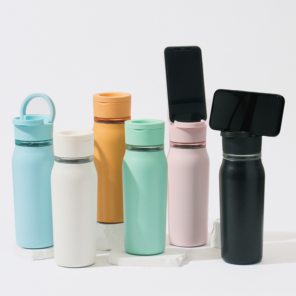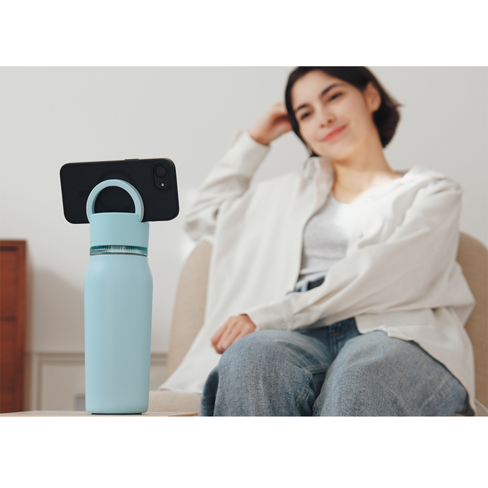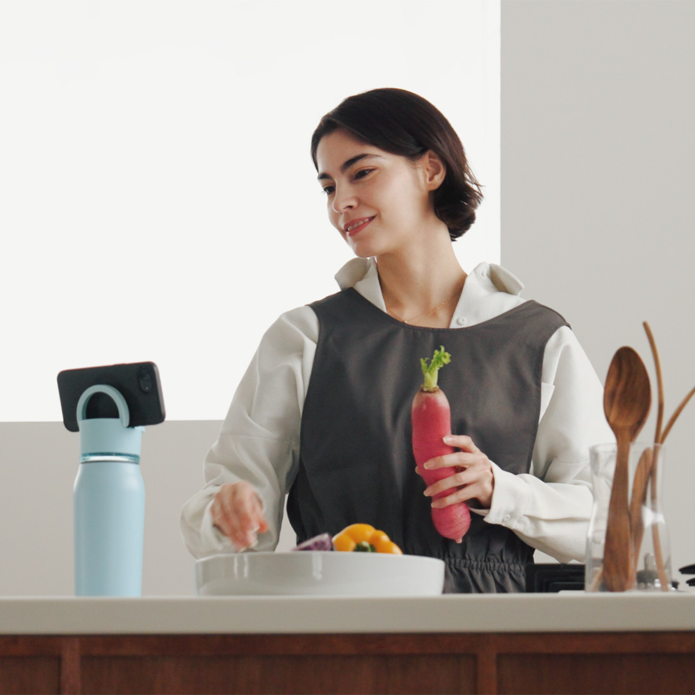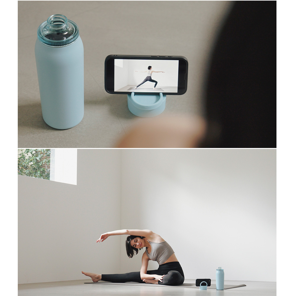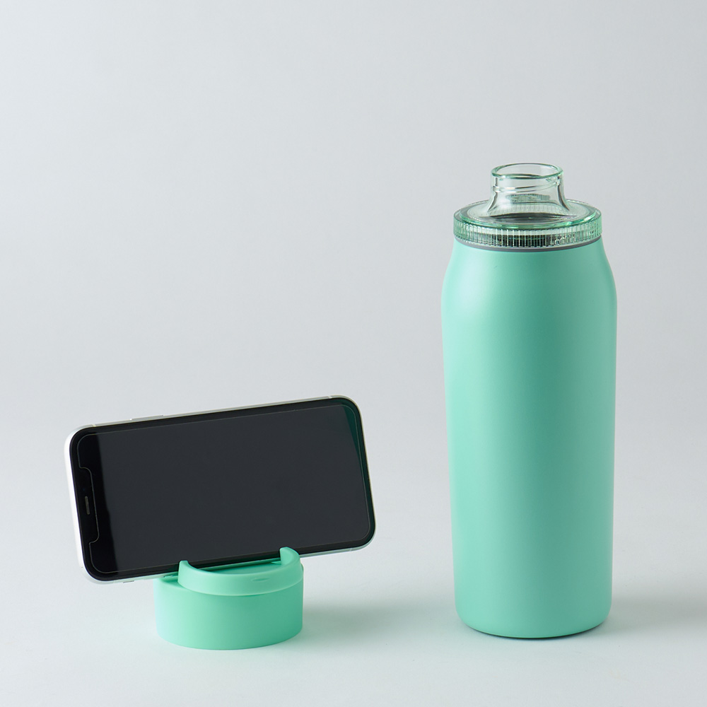 ステンレスボトル(水筒)とスマートフォンスタンドが合体! 使い方はキャップをスライドしてスマホを置くだけ。タテにもヨコにもセットでき、動画の視聴、ビデオ通話、自撮りもラクラク。飲み口は口当たりが優しく、安全性の高いトライタン樹脂製。分解して洗えるので衛生的です。ステンレスボトル×スマホスタンド|1台2役の新発想ステンレスボトルとスマートフォンスタンドが合体。「飲む」と「見る」をこれ1本でスマートに。移動時間、休憩時間、作業時間を心地よく整える、スタンド機能付きステンレスマグボトルです。キャップをスライドして置くだけ|セットは3秒使い方は簡単。キャップをスライドして、スマホを差し込むだけ。スタンドを別で持ち歩かなくても、ボトルがそのままスマホスタンドに早変わりします。タテ置き・ヨコ置き対応|動画視聴もビデオ通話も快適スマホはタテにもヨコにもセット可能。高さがあるので視線が上がり、動画視聴、ビデオ通話、オンライン会議などがラクに。キッチンでレシピ動画を見たいとき、デスクで画面を固定したいときにも便利です。アウトドアやお出かけで活躍|自撮り・集合写真にも公園、キャンプ、スポーツ観戦など、手がふさがりがちな場面でもスタンドがあると安心。気軽に自撮りや家族・友人との撮影を楽しめます。フィットネスのフォーム確認にも相性の良いアイテムです。口当たりがやさしいトライタン飲み口|透明感と安心感飲み口には透明感のあるトライタン樹脂を採用。ペットボトルのような感覚で飲みやすく、口当たりもやさしい仕様です。安全性に配慮した素材なので、日常使いにも選びやすいポイント。分解して洗える|衛生的でお手入れ簡単飲み口は分解して洗える構造。細かな部分まで手が届きやすく、毎日使うボトルだからこそ清潔に保てます。お手入れが簡単だと、持ち歩きも続けやすくなります。こんなシーンに|移動時間が“使える時間”に変わるお出かけに/通勤・通学に/フィットネスに/キッチンで動画視聴に/テレワークに。ボトル1本で水分補給とスマホの固定ができ、荷物を増やさずスマートに行動できます。※保冷専用