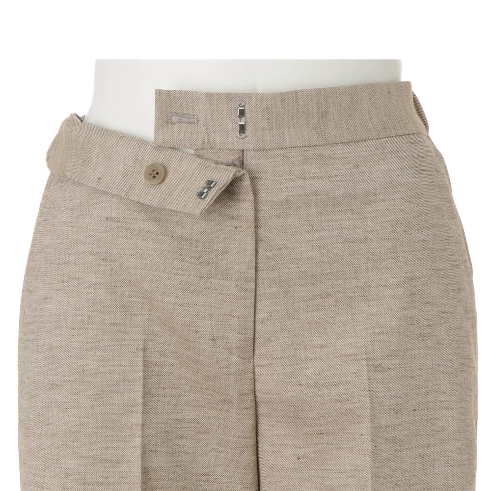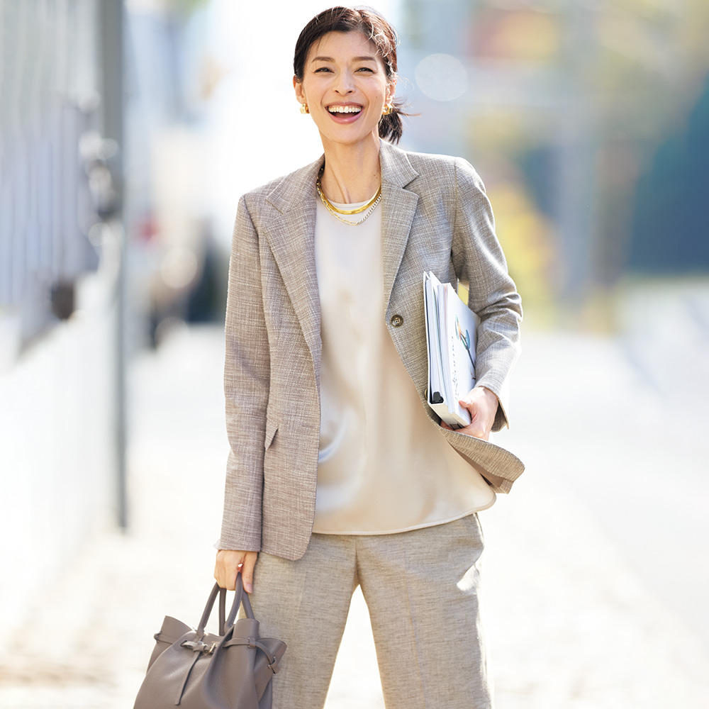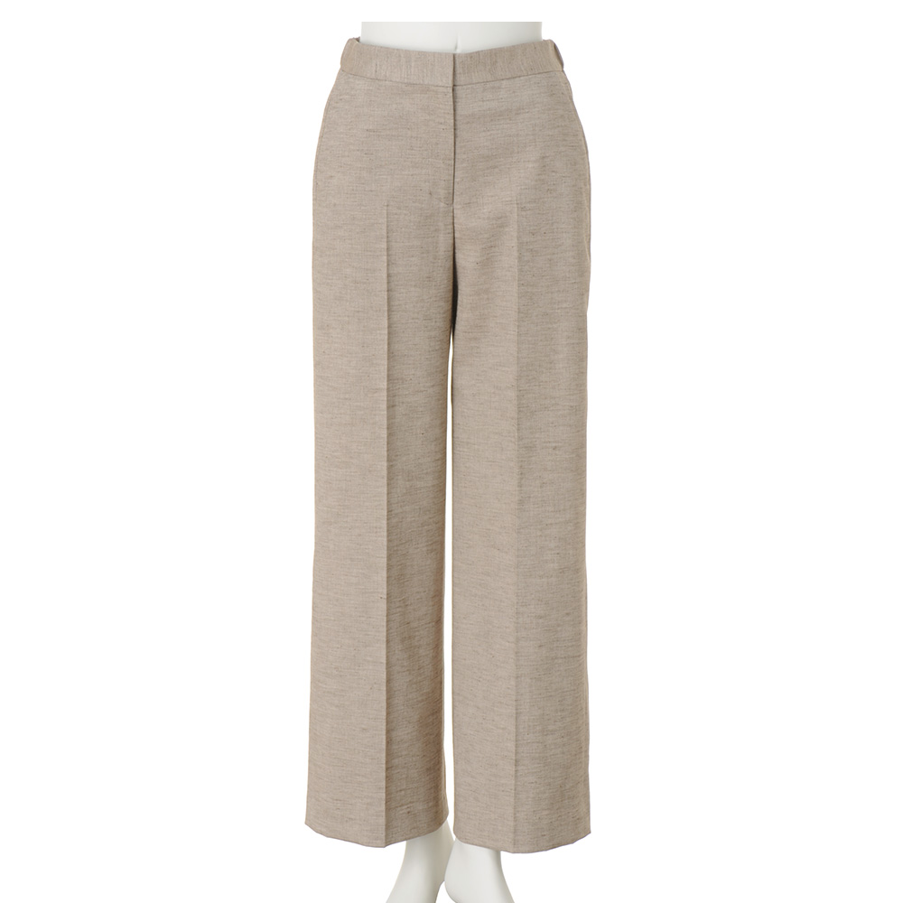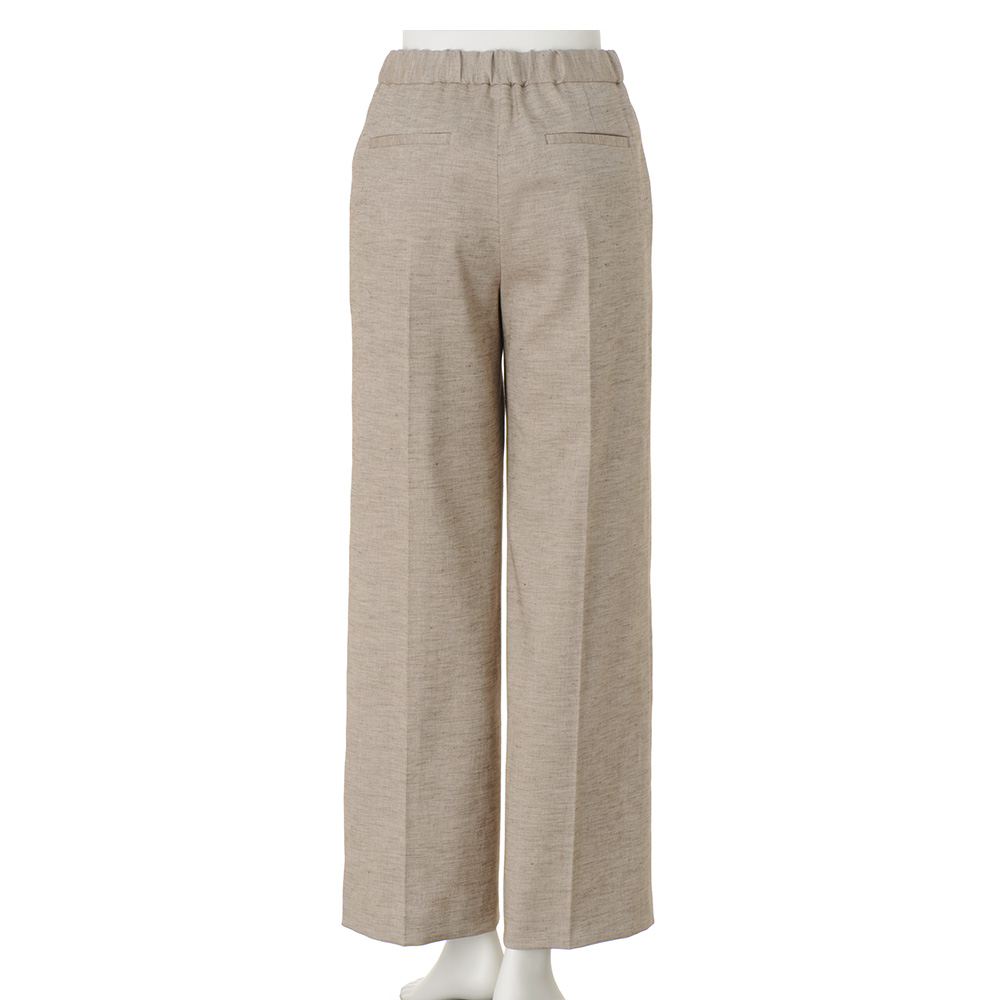 返品送料無料キャンペーン実施中!3/31(火)まで 対象商品CAREER STYLE知性と気品で魅せる印象美仕事での活躍の場が広がるほど、本質的な美しさを求めたくなるキャリア服。上質な生地、豊かな色、美しい仕立て…。品位を礎に、自分らしいスタイルを磨き続けて。キャリアの勝負服は、上質な天然素材に拘ってキャリア服を知り尽くすDAMAコレクションが自信を持っておすすめする、コットンリネンをベースにしたメランジ調ツイルパンツ。天然素材ならではのナチュラルな風合いに、奥行きのある表情を宿したパンツは、すらりと美脚に見せるセミワイドシルエットを、確かなテーラリング技術で実現。暑い季節をクールに乗りきる清涼感と品格の両立を図った仕事服に身を包んで、颯爽とビジネスの現場へ。≫ POINTウエストは後ろがゴム仕様で、快適なフィット感を実現。後ろ姿をすっきり見せる片玉縁ポケット付き。