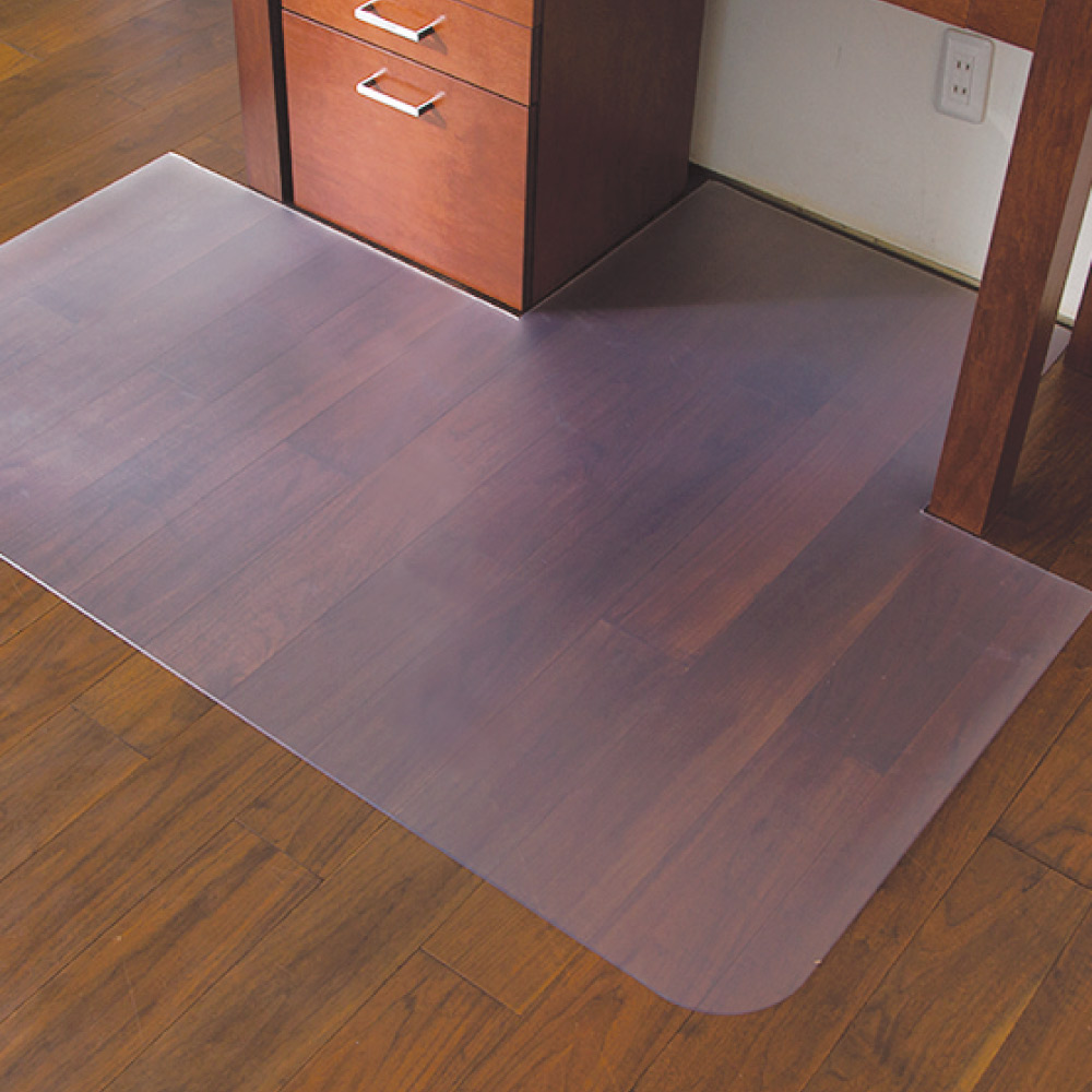 アキレス透明マットシリーズのチェアマット!キズつきやすいデスク回りの床や、重い椅子の下に。アキレス透明マットシリーズのこだわりはそのまま。チェアマットにもこだわりを!【ポイント1】貼りつかないのに、ズレにくい。裏面には見えないほど小さな凹凸が。空気の層を作り、マットが床にベタっとくっつかず、適度な密着を実現しました。【ポイント2】アキレス×ディノスの特殊コーティングで長く使える丁寧なつくりにこだわった日本製の透明マットは、特殊コーティングで経年劣化によるべたべたを大幅に軽減。大切な床を守ります。【ポイント3】厚さ約2.5mmで丈夫!キャスター付きチェアや重量のあるマッサージチェアなどの下に弾いても大丈夫です。床のキズやへこみをしっかり防ぎ、キャスターの音も響きにくいです。【ポイント4】床暖房対応床暖房対応しており、毛足の長いカーペットの上でも使用できます。【ポイント5】マットにつまずきにくい厚さ約2.5cmとしっかり厚みがありますが、マットの段差が気にならないように、断面が斜めになっているため、マットにつまずきにくいです。サイズオーダーでご希望の形に!サイズ表のサイズ内であれば、円形、デスクの形に合わせた形状などご指定の形状にてオーダーカットを承ります。