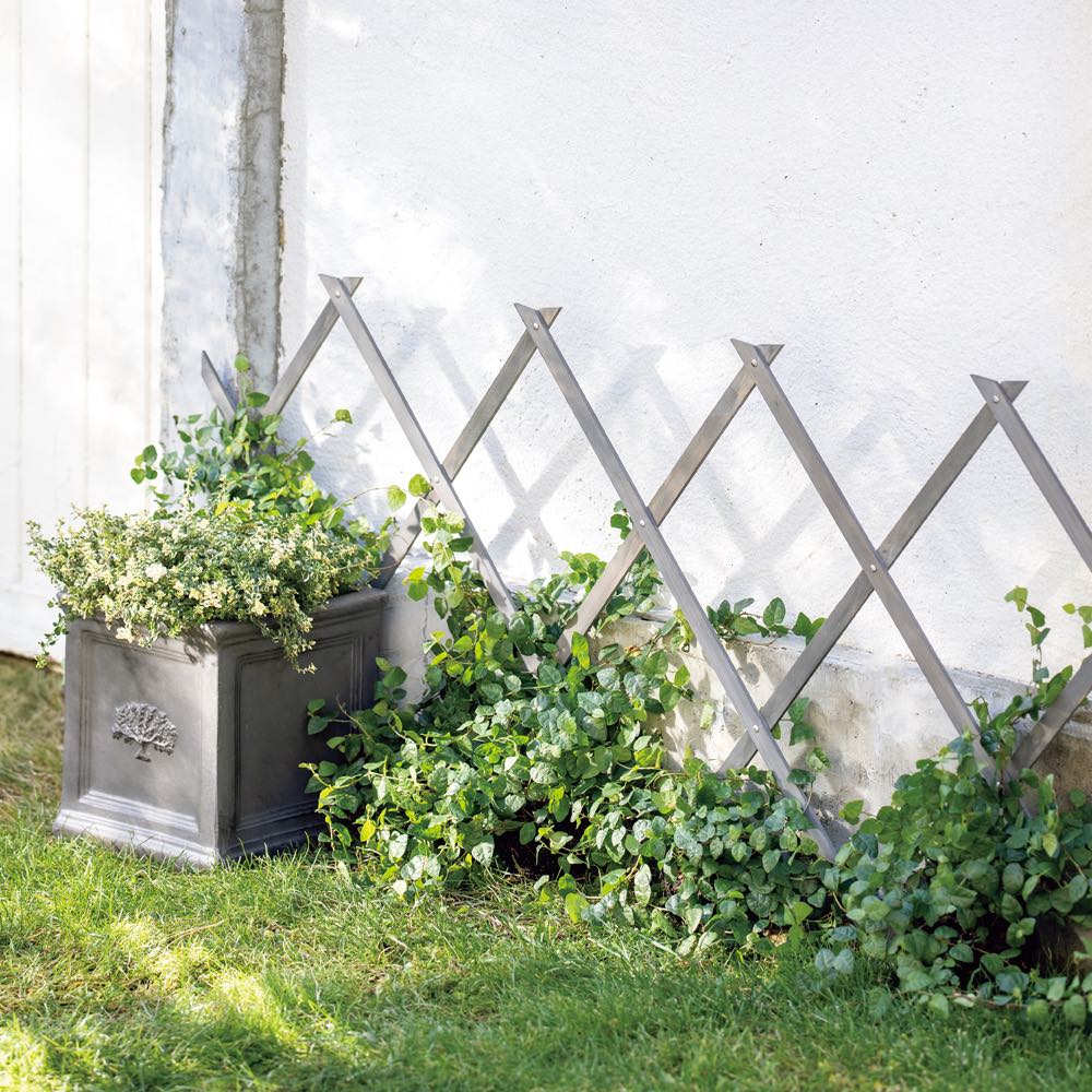 無粋な基礎部分を上手に目隠し。幅が伸縮自在の蛇腹式。土に差し込んでも、立てかけてプランターで押さえても。