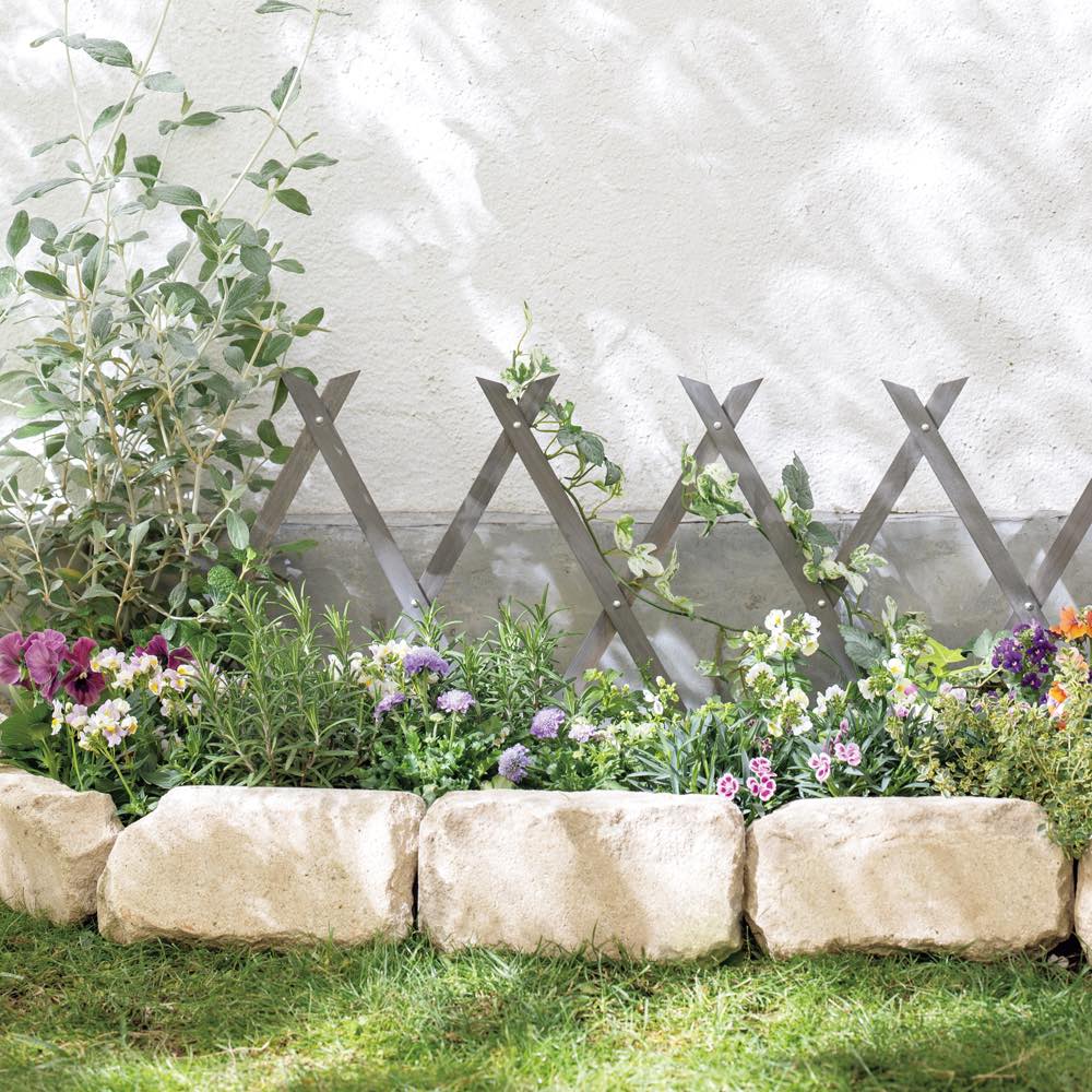 無粋な基礎部分を上手に目隠し。幅が伸縮自在の蛇腹式。土に差し込んでも、立てかけてプランターで押さえても。