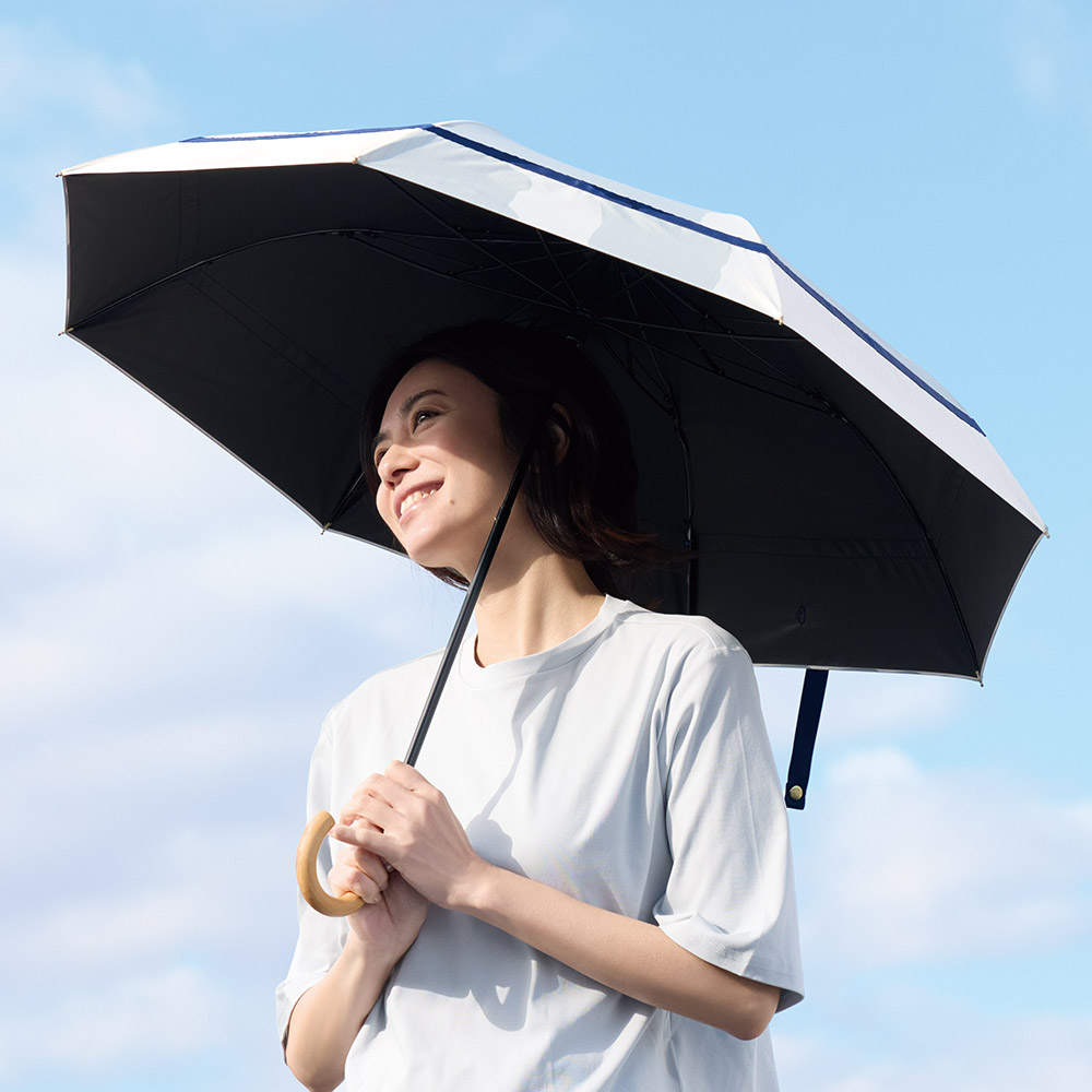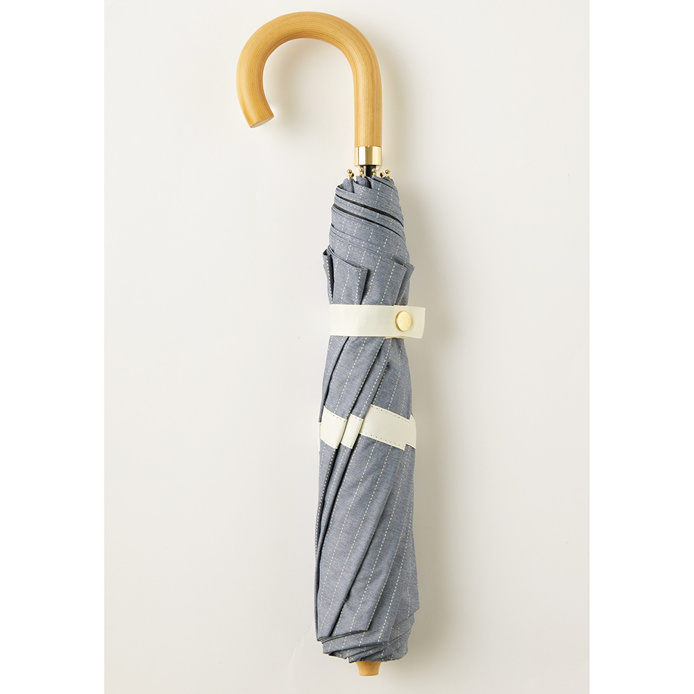 年中活躍!上品ストライプの晴雨兼用3段折り畳み傘長傘がコンパクトになったようなスタイルの折り畳み傘で、日傘や雨をしっかり防ぐサイズながら、持ち運びしやすいコンパクトさが特徴です。骨をぽきぽきと折らなくても開閉でき、また、閉じたときに生地を整える箇所が少ないため、サッと開いてサッと閉じることが出来ます。甘くなり過ぎず、通勤などでもお使いいただけます。